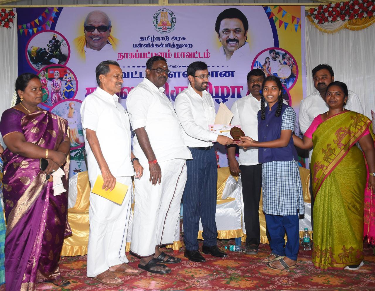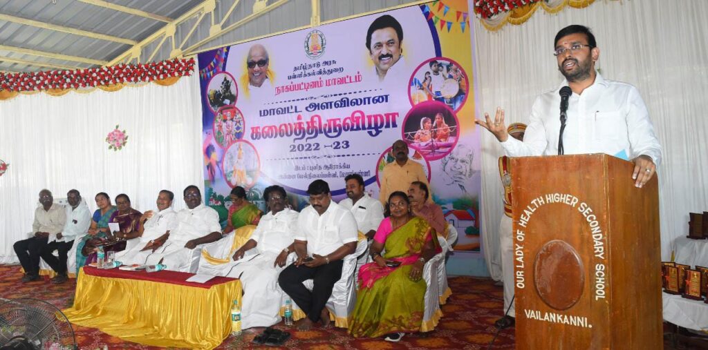 அதனைத் தொடர்ந்து 2022-23 சட்டமன்ற கூட்டத்தொடரில் பள்ளி கல்வித்துறை மாநில கோரிக்கையின் போது மாணவர்களின் கலை திறன்களை வெளிக்கொணரும் விதமாக அரசு பள்ளிகளில் பயிலும் மாணவர்கள் பயன்பெறும் வகையில் பள்ளி, வட்டாரம், மாவட்டம் மற்றும் மாநில அளவில் கலை திருவிழா நடத்தப்படும் என்று மாண்புமிகு பள்ளி கல்வித்துறை அமைச்சர் அவர்களால் அறிவிக்கப்பட்டது. அந்த அறிவிப்பினை தொடர்ந்து நம் மாவட்டத்தில் உள்ள அரசு பள்ளிகளில் பயிலும் மாணவர்களுக்கு பல்வேறு போட்டிகள் பள்ளிகள் அளவிலும், வட்டார அளவிலும் மற்றும் மாவட்ட அளவிலும் நடத்தப்பட்டது. மாவட்ட அளவில் நடத்தப்பட்ட போட்டிகளில் முதல் மூன்று இடம் பெற்ற மாணவ மாணவிகளுக்கு பரிசு மற்றும் சான்றிதழ்கள் வழங்கப்படுகிறது . நாகப்பட்டினம் மாவட்ட அளவில் முதலிடம் பெற்ற மாணவர்கள் மாநில அளவில் 27-12-2022 முதல் 30-12-2022 வரை நடைபெறும் போட்டிகளில் கலந்து கொள்ள உள்ளார்கள். மாநில அளவில் வெற்றி பெறும் மாணவர்களுக்கு பரிசு மற்றும் சான்றிதழ்கள் வழங்கப்படுவதோடு, கலையரசன் மற்றும் கலையரசி என்ற விருதுகளும் தமிழக அரசின் சார்பில் வழங்கி சிறப்பித்து மேலும் மாநில அளவில் வெற்றி பெறும் முதல் 20 மாணவர்கள் வெளிநாடுகளுக்கு கல்வி சுற்றுலா அழைத்துச் செல்லப்பட உள்ளனர்.