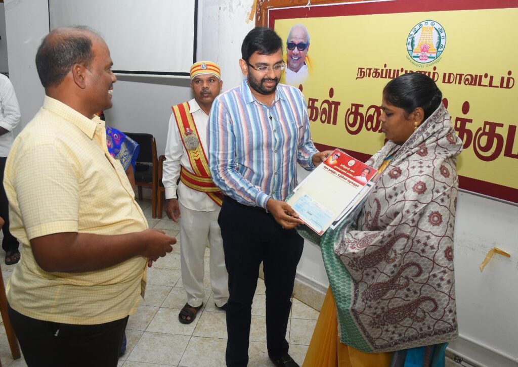 நாகப்பட்டினம் மாவட்ட ஆட்சியர் அலுவலகத்தில் மக்கள் குறைதீர்க்கும் நாள் கூட்டம் மாவட்ட ஆட்சித்தலைவர் டாக்டர் அ.அருண்தம்புராஜ் தலைமையில் இன்று நடைபெற்றது.