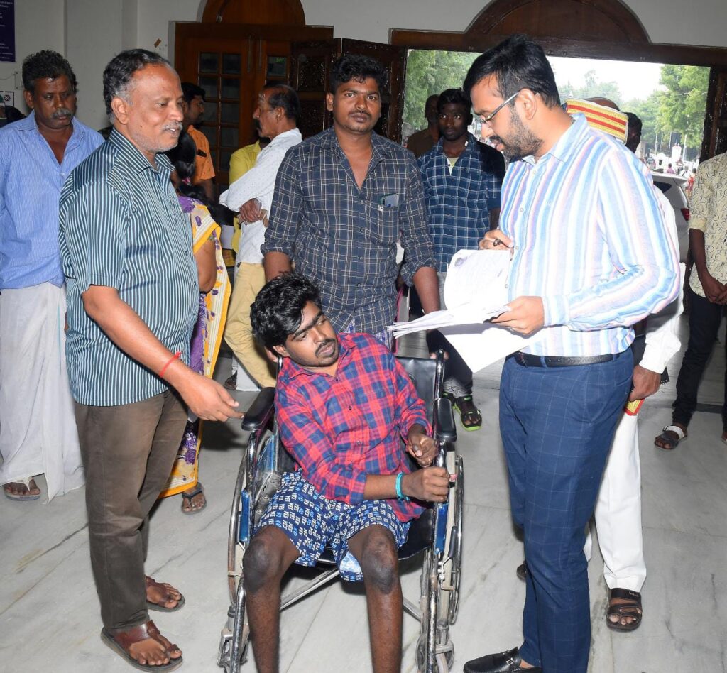 வாராந்திர மக்கள் குறைதீர்க்கும் நாள் கூட்டத்தில் வங்கிக் கடன் மற்றும் உதவித்தொகை, குடும்ப அட்டை, வேலைவாய்ப்பு, கல்வி உதவித் தொகை உள்ளிட்ட பல்வேறு கோரிக்கைகளை முன் வைத்து மொத்தம் 247 மனுக்கள் பெறப்பட்டுள்ளது. பெறப்பட்ட மனுக்கள் மீது விரைந்து நடவடிக்கை மேற்கொள்ள சம்பந்தப்பட்ட அலுவலர்களுக்கு மாவட்ட ஆட்சித்தலைவர் அவர்கள் அறிவுறுத்தினார் அதனைத்தொடர்ந்து வாராந்திர மக்கள் குறைதீர்க்கும் நாள் கூட்டத்தில் மாற்றுத்திறனாளிகள் நலத்துறை சார்பில் நாகப்பட்டினம் வட்டம், ப.கெந்தகை கிராமத்தை சேர்ந்த செல்வி உம்முல் ஹஸனா த/பெ ஹாஜா நஜிபுதீன் என்ற மாற்றுத்திறனாளிக்கு மூளை முடக்குவாதத்தால் பாதிக்கப்பட்டோருக்கான சிறப்பு சக்கர நாற்காலியினையும், பிற்படுத்தப்பட்டோர் மற்றும் சிறுபான்மையினர் நலத்துறையின் கீழ் செயல்பட்டு வரும் மாணவர்கள் தங்கும் விடுதியில் மாவட்ட அளவில் சிறப்பாக பணிபுரிந்த 3 காப்பாளினிகளுக்கு பாராட்டுச் சான்றிதழ், கேடயம் மற்றும் ஊக்கத் தொகைக்கான காசோலையினையும், சமூக ஆர்வலர் ரஜினிகாந்த் அவர்கள் சார்பில் நாகப்பட்டினம் நகராட்சி சம்பாத்தோட்டம் பகுதியைச் சேர்ந்த வெங்கடேசன் என்பவருக்கு ரூ.22,700 மதிப்பீட்டிலான உபயோகப் பொருட்களையும் மாவட்ட ஆட்சித்தலைவர் வழங்கினார்.