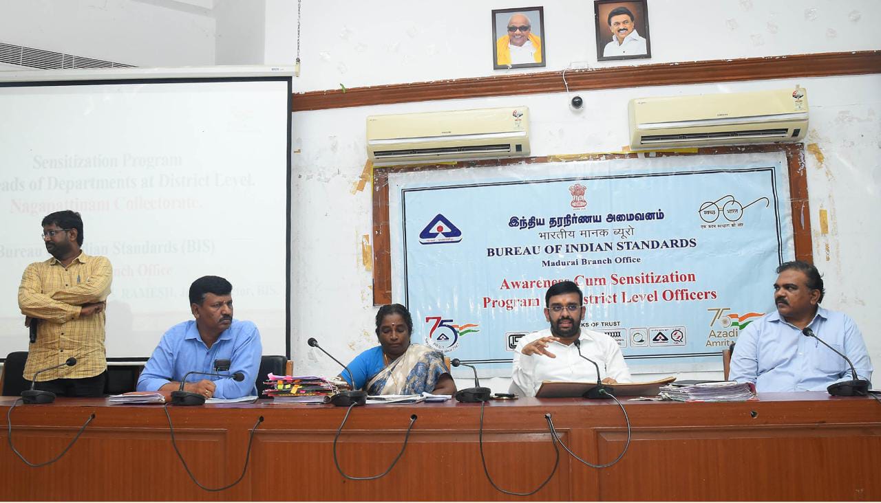 நாகப்பட்டினம் மாவட்ட ஆட்சியர் அலுவலகத்தில் இந்திய அரசின் தரநிர்ணய அமைவனம் சார்பில் தரநிலைகள் குறித்து மாவட்ட அலுவலர்களுடனான விழிப்புணர்வு கூட்டம் மாவட்ட ஆட்சித்தலைவர் டாக்டர் அ.அருண்தம்புராஜ் தலைமையில் நடைபெற்றது.