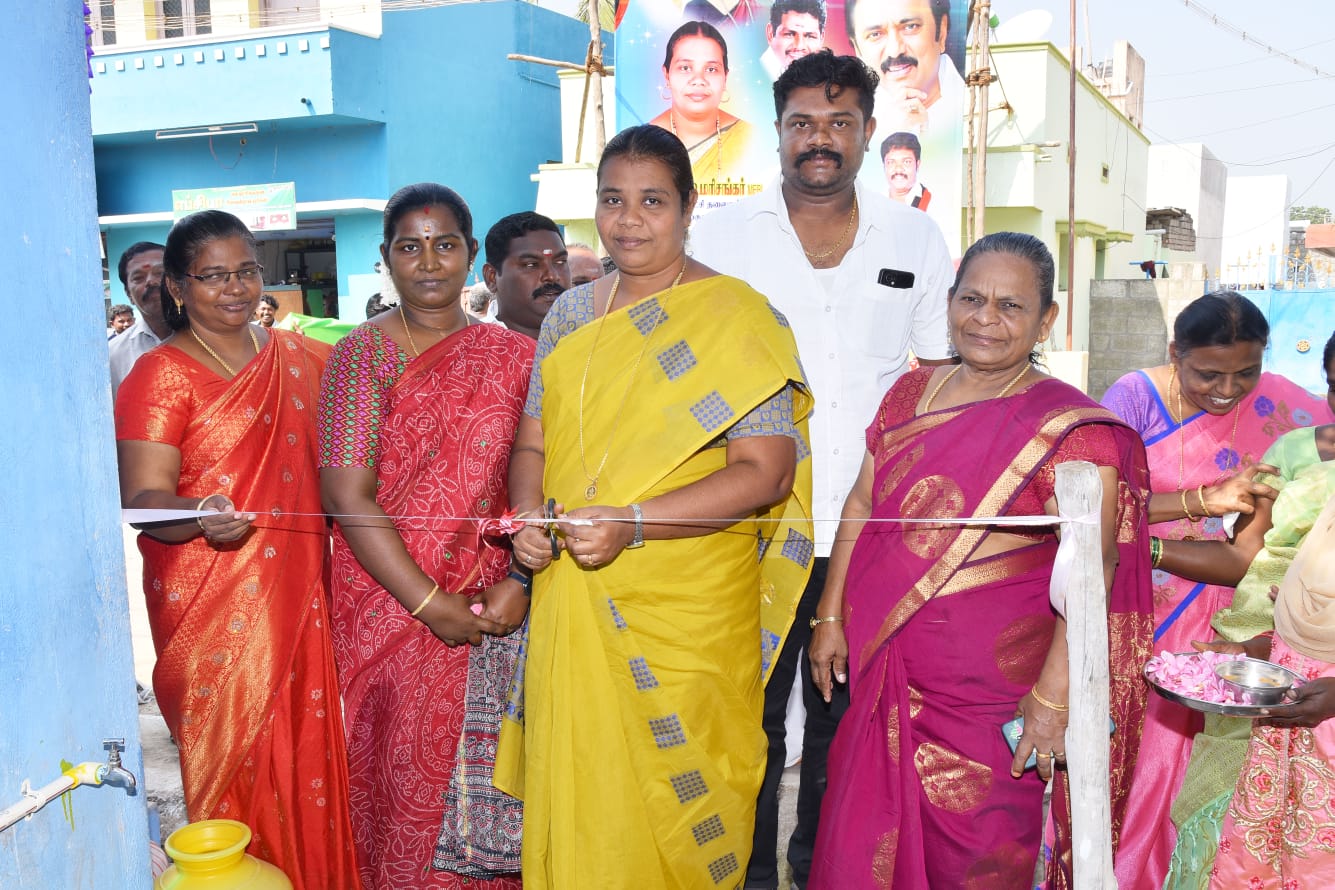 தூத்துக்குடி மாவட்ட ஊராட்சி மன்ற தலைவர் பிரம்மசக்தி புதிய கட்டிடத்தை திறந்து வைத்து பொதுமக்களுக்கு சுத்திகரிக்கப்பட்ட குடிநீர் வழங்கும் திட்டத்தை துவக்கி வைத்து இனிப்பு வழங்கினார்.