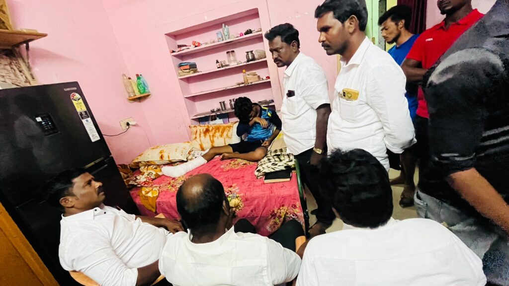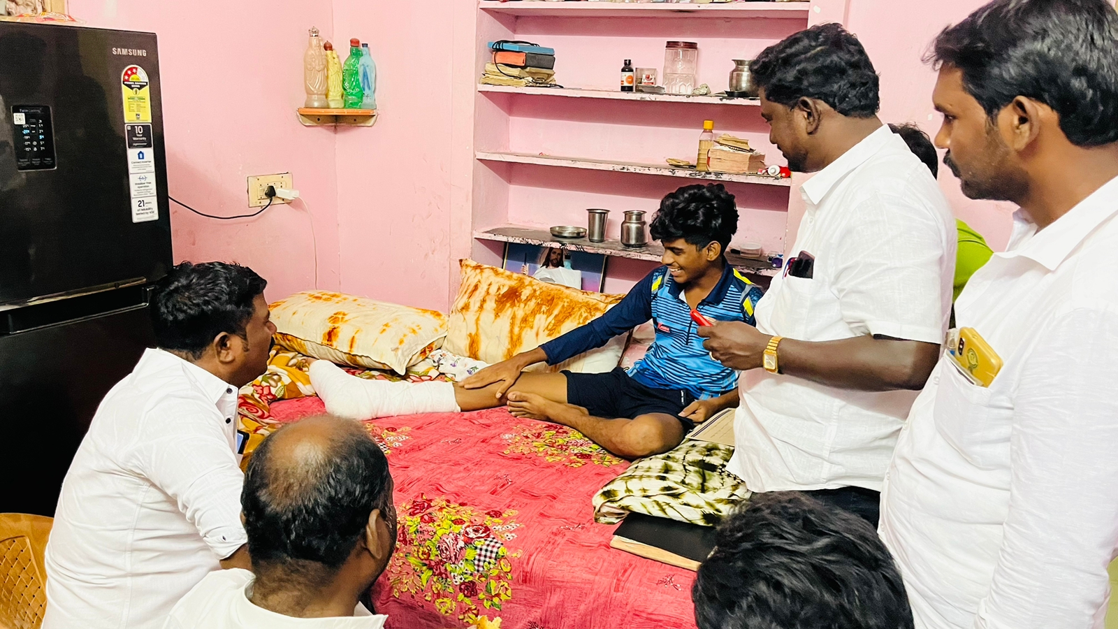 இந்நிலையில் இப்பகுதியை சேர்ந்த கபடி வீரர் ஜென்சன் கபடி போட்டியொன்றில் விளையாடும் போது எதிர்பாராத வகையில் வலது காலில் எலும்பு முறிவு ஏற்பட்டது. தற்போது அவர் வீட்டில் ஓய்வெடுத்து வருகிறார். தகவல் அறிந்த மாப்பிள்ளையூரணி ஊராட்சி மன்ற தலைவரும், கூட்டுறவு கடன் சங்க தலைவருமான தூத்துக்குடி திமுக கிழக்கு ஒன்றிய செயலாளர் சரவணக்குமார் கபடி வீரர் ஜென்சன் இல்லத்திற்கு நேரில் சென்று ஆறுதல் கூறினார்.
