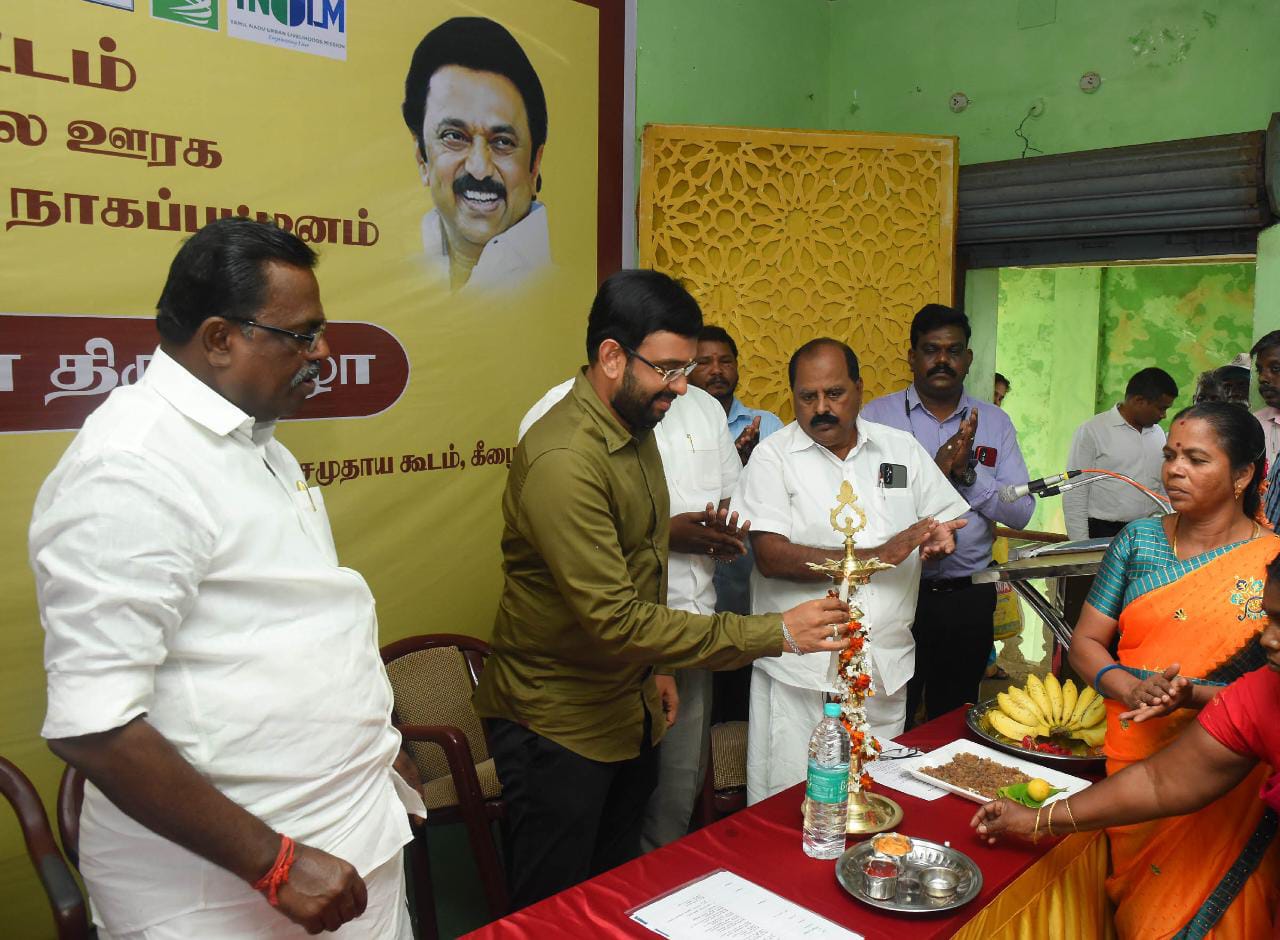 நாகப்பட்டினம் மாவட்டம் கீழையூர் சமுதாயகூடத்தில் தமிழ்நாடு ஊரக வாழ்வாதார இயக்கம் சார்பில் நடைபெற்ற வேலை வாய்ப்புடன் கூடிய இளைஞர் திறன் திருவிழாவினை மாவட்ட ஆட்சித் தலைவர் டாக்டர் அ.அருண்தம்புராஜ் தமிழ்நாடு மீன்வளர்ச்சிக் கழக தலைவர் என்.கௌதமன் ஆகியோர் குத்து விளக்கேற்றி தொடங்கி வைத்தனர்.