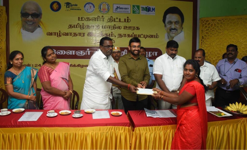 நாகப்பட்டினம் மாவட்டம் கீழையூர் சமுதாயகூடத்தில் தமிழ்நாடு ஊரக வாழ்வாதார இயக்கம் சார்பில் நடைபெற்ற வேலை வாய்ப்புடன் கூடிய இளைஞர் திறன் திருவிழாவினை மாவட்ட ஆட்சித் தலைவர் டாக்டர்; அ.அருண்தம்புராஜ் தமிழ்நாடு மீன்வளர்ச்சிக் கழக தலைவர் என்.கௌதமன் ஆகியோர் தொடங்கி வைத்தனர்.