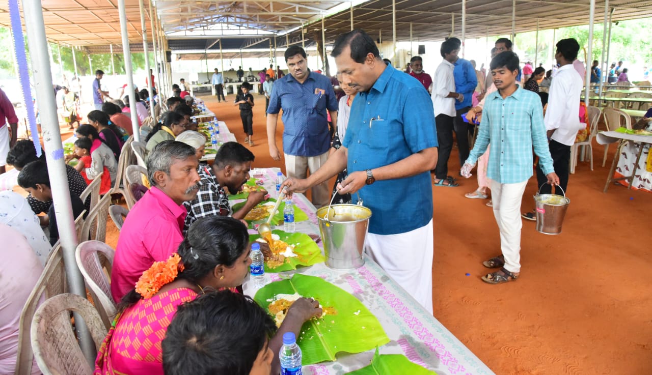 கிறிஸ்துமஸ் பண்டிகையை முன்னிட்டு தூத்துக்குடி மாவட்டத்தில் உள்ள நாலுமாவடி இயேசு விடுவிக்கிறார் தேவனுடைய கூடாரத்தில் வைத்து 2 ஆயிரம் பேருக்கு சகோ. மோகன்.சி.லாசரஸ் விருந்து வழங்கினார்.