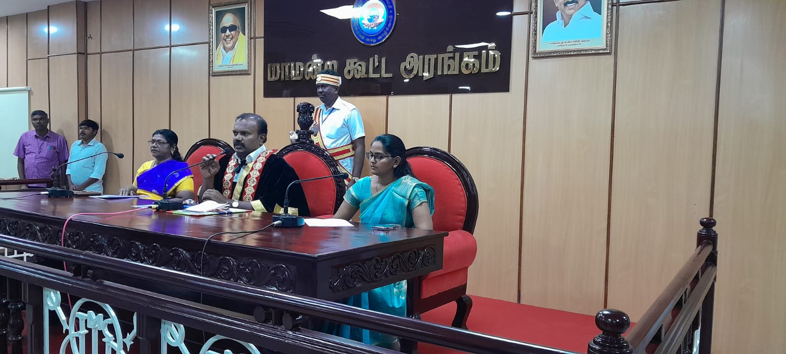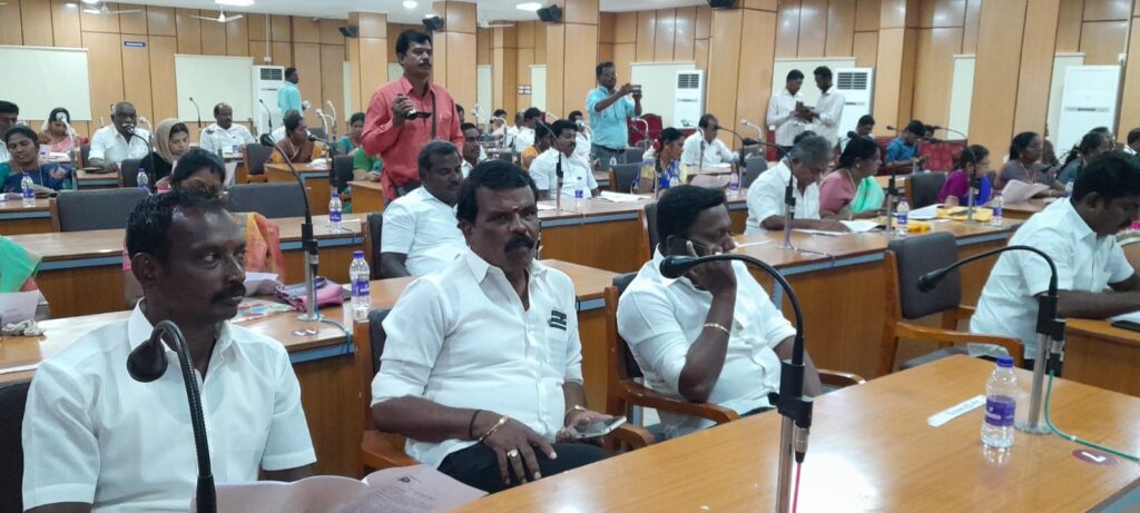தூத்துக்குடி மாநகராட்சி கூட்டம் மேயர் ஜெகன் பெரியசாமி தலைமையில் துணைமேயர் ஜெனிட்டா, ஆணையர் சாருஸ்ரீ, ஆகியோர் முன்னிலையில் கூட்ட அரங்கில் நடைபெற்றது.