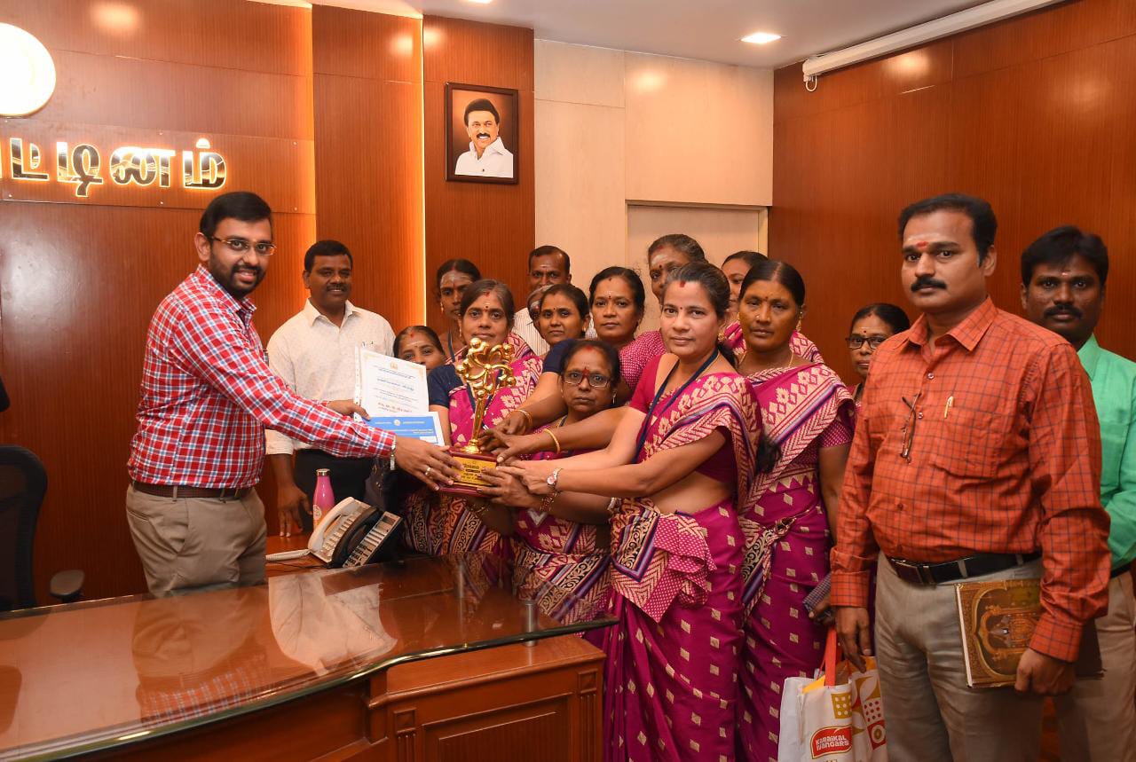 மாண்புமிகு தமிழ்நாடு முதலமைச்சர் அவர்கள் திருச்சிராப்பள்ளியில் அரசு விழாவினை துவக்கி வைத்து மகளிர் சுய உதவி குழுக்களுக்கு கடன் உதவிகள், மணிமேகலை விருதுகள், மாநில அளவிலான வங்கியாளர் விருதுகள் போன்றவை வழங்கிய நிகழ்ச்சியில் நாகப்பட்டினம் வட்டம் மஞ்சக்கொல்லை கிராமத்தை சேர்ந்த மஞ்சள் நிலா குழு மற்றும் வேதாரண்யம் நகராட்சியை சேர்ந்த பங்காரு அடிகளார் குழு ஆகிய குழுக்கள் மணிமேகலை விருதுகள், சான்றிதழ் மற்றும் தலா ரூ. 1 இலட்சத்திற்கான காசோலையினையும் மாண்புமிகு தமிழ்நாடு முதலமைச்சர் அவர்களால் வழங்கப்பட்டதை மாவட்ட ஆட்சித்தலைவர் அவர்களிடம் காண்பித்து வாழ்த்துப்பெற்றனர்.