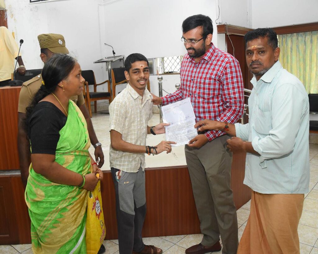 வாராந்திர மக்கள் குறைதீர்க்கும் நாள் கூட்டத்தில் வங்கிக் கடன் மற்றும் உதவித்தொகை, குடும்ப அட்டை, வேலைவாய்ப்பு, கல்வி உதவித் தொகை உள்ளிட்ட பல்வேறு கோரிக்கைகளை முன் வைத்து மொத்தம் 231 மனுக்கள் பெறப்பட்டுள்ளது. பெறப்பட்ட மனுக்கள் மீது விரைந்து நடவடிக்கை மேற்கொள்ள சம்பந்தப்பட்ட அலுவலர்களுக்கு மாவட்ட ஆட்சித்தலைவர் அறிவுறுத்தினார். அதனைத்தொடர்ந்து வாராந்திர மக்கள் குறைதீர்க்கும் நாள் கூட்டத்தில் வருவாய்த்துறை சார்பில் நாகப்பட்டினம் வட்டத்தில், செல்லூர் கிராமத்தை சேர்ந்த மல்லிகா க/பெ தவமணி, யுகேஷ் த/பெ சிவராமமூர்த்தி, மற்றும் சின்னப்பொண்ணு, நாகூர் கிராமத்தை சேர்ந்த பார்வதி க/பெ அஞ்சான் ஆகியோருக்கு இலவச வீட்டுமனை பட்டாவினையும், மாற்றுத்திறனாளிகள் நலத்துறை திருக்குவளை வட்டத்தில், ஏரித்திடல் கிராமத்தை சேர்ந்த ஏ.சுப்ரமணியம் என்ற மாற்றுத்திறனாளிக்கு பார்வையற்றோருக்கான கருப்பு கண்ணாடி, ஊன்றுகோல் மற்றும் மாற்றுத்திறனாளிகளுக்கான தேசிய அடையாள அட்டையினையும், தொழுதூர் கிராமத்தை சேர்ந்த என்.வீரையன் என்ற மாற்றுத்திறனாளிக்கு ஊன்றுகோலினையும் மாவட்ட ஆட்சித்தலைவர் வழங்கினார்.