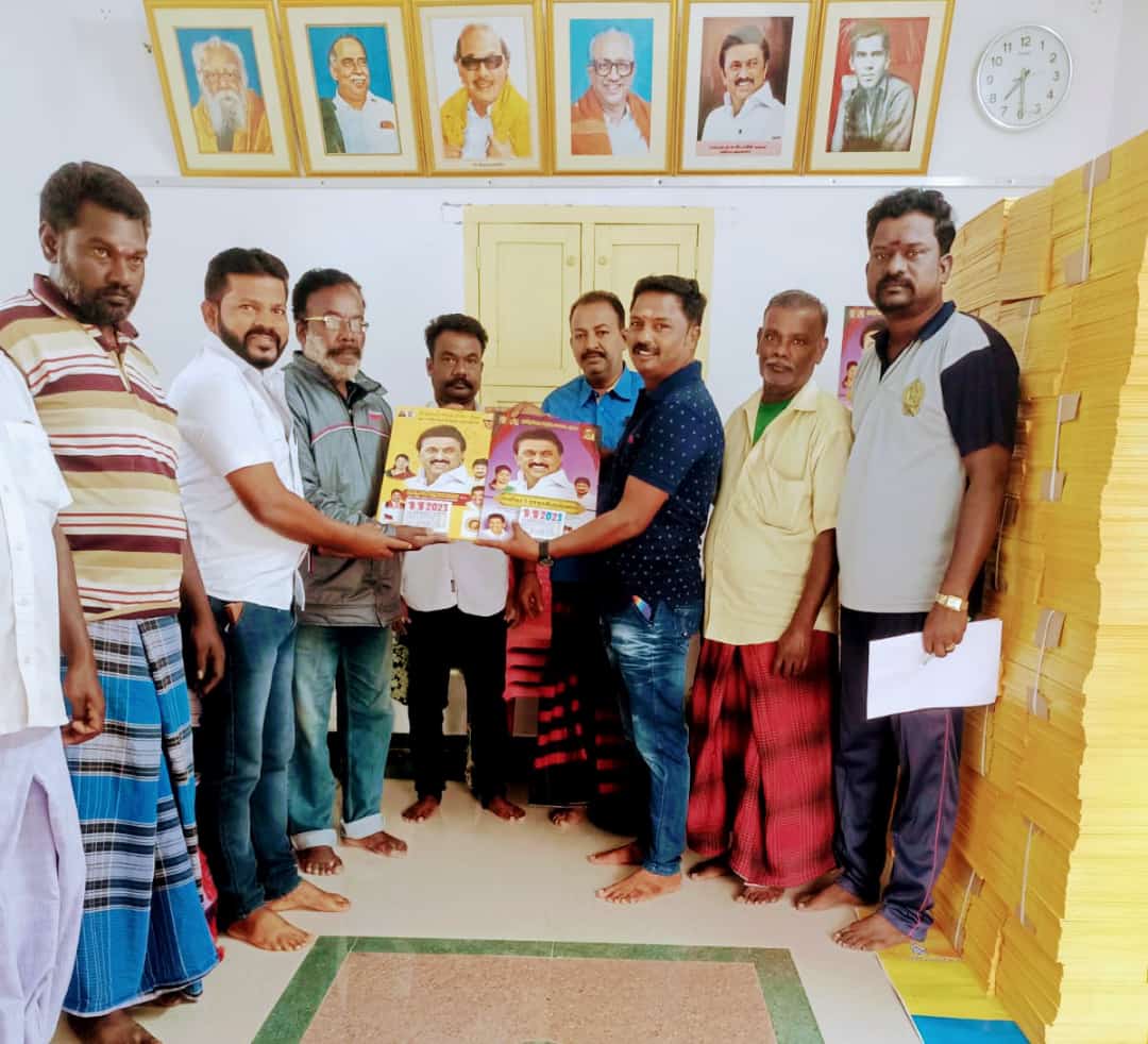 இதையடுத்து மாப்பிள்ளையூரணி பகுதியில் வசிக்கும் சமூக நல அமைப்புகள், திமுக தொண்டர்கள் மற்றும் பொதுமக்களுக்கு காலண்டர் விநியோகத்தை ஒன்றிய செயலாளர் சரவணக்குமார் துவங்கி வைத்தார்.