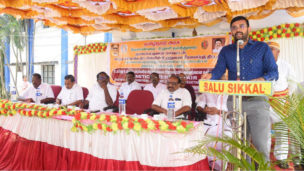 நாகப்பட்டினம் மாவட்டம் சிக்கல், வேளாண் அறிவியல் நிலையத்தில் வேளாண்மை மற்றும் உழவர் நலத்துறையின் மூலம் மாவட்ட அளவிலான விவசாய கருத்தரங்கு மற்றும் உயர்தர உள்ளுர் இரகங்களை பிரபலப்படுத்துவதற்கான கண்காட்சி மாவட்ட ஆட்சித்தலைவர் டாக்டர்.அ.அருண்தம்புராஜ். தலைமையில் தமிழ்நாடு மீன்வளர்ச்சிக் கழக தலைவர் என்.கௌதமன் கீழ்வேளுர் சட்டமன்ற உறுப்பினர் வி.பி.நாகை மாலி ஆகியோர் முன்னிலையில் இன்று நடைபெற்றது.