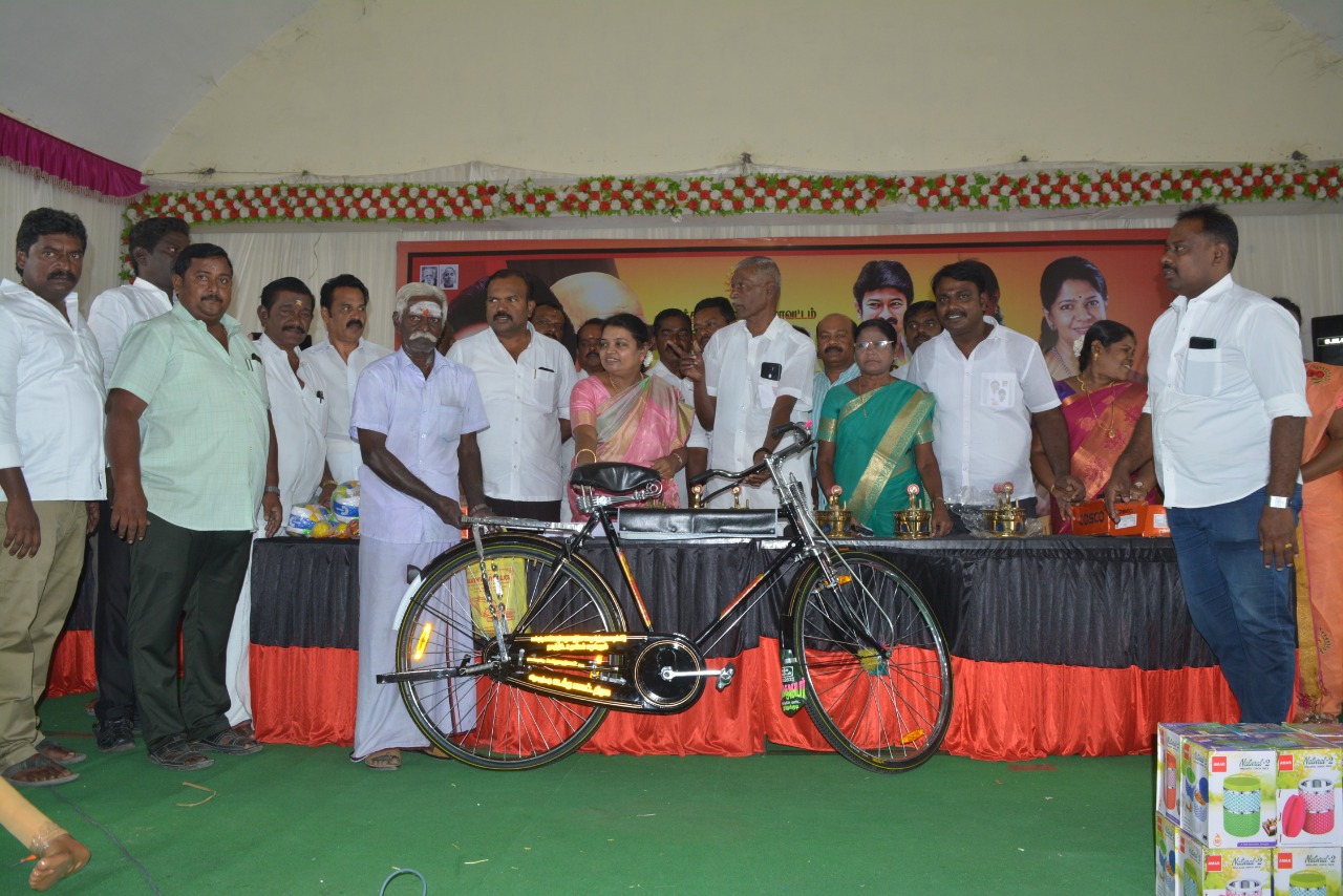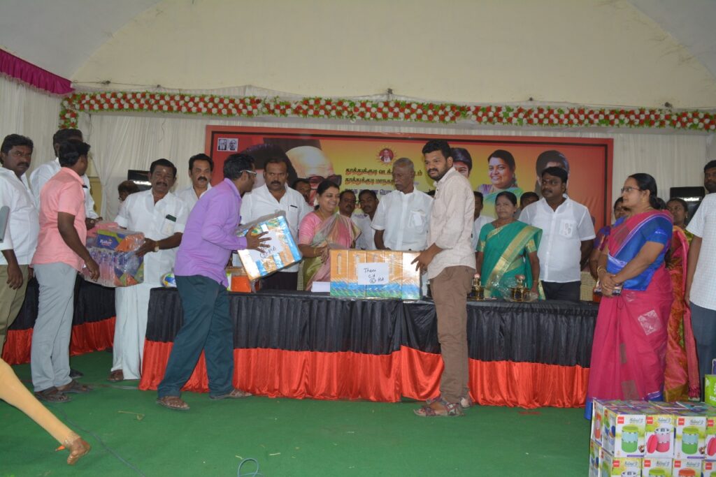 அமைச்சர் கீதாஜீவன் பேசுகையில்: திமுகவை பொறுத்தவரை தலைவர் கலைஞர், முதலமைச்சர் ஸ்டாலின், விளையாட்டுத்துறை அமைச்சர் உதயநிதி, நமது எம்.பி. கனிமொழி ஆகியோர்களது பிறந்த நாளை ஆடம்பரமின்றி மக்கள் பயன்பெறும் வகையில் நலத்திட்ட உதவிகள் வழங்கி ஆண்டு தோறும் செய்து வருகிறோம். அதுபோல் தையல் மிஷின் 43, சைக்கிள் 7, இஸ்திரி பெட்டி 6, ஹாட் பாக்ஸ், ஊனமுற்ற ஒருவருக்கு செயற்கை கால், தென்மாநில அளவில் ராமநாதபுரம், தேனி, விருதுநகர், திருநெல்வேலி, கன்னியாகுமரி, தென்காசி உள்ளிட்ட பல மாவட்டங்களில் விளையாட்டுத்துறையில் பங்குபெற்றுள்ள அனைத்து மாணவ-மாணவியர்கள் 100 பேருக்கு ஷூ மற்றும் விளையாட்டு உபகரணப் பொருட்கள் உட்பட ரூ.10 லட்சம் மதிப்பில் இந்த உதவிகள் வழங்கப்படுகின்றன.
