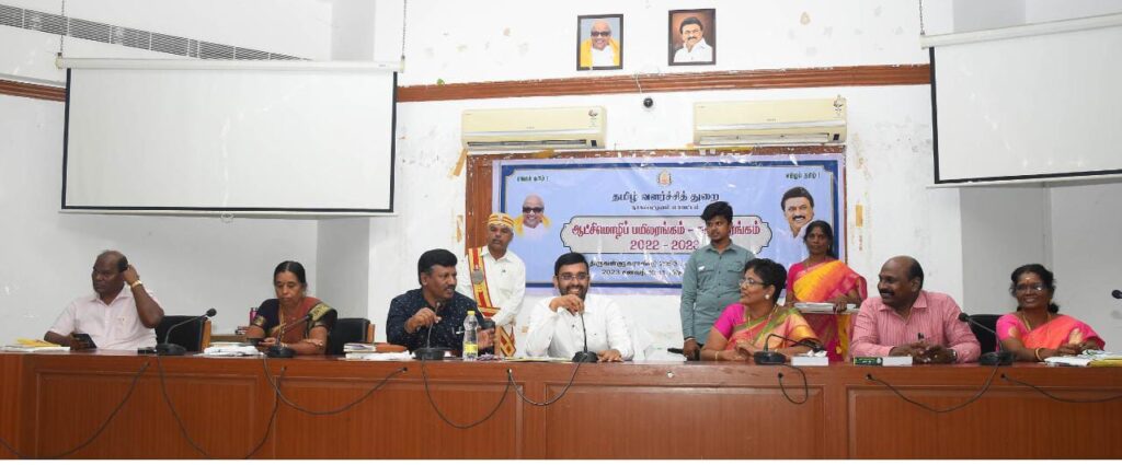தமிழ் வளர்ச்சித் துறை சார்பில் அரசு பணியாளர்களுக்கு ஆட்சிமொழிப் பயிலரங்கம் மற்றும் கருத்தரங்கம் 10.01.20123, 11.01.2023 ஆகிய இரண்டு நாள்களில் நடைபெற்றது. ஆட்சிமொழிப் பயிலரங்கினைத் தொடர்ந்து நடைபெற்ற கருத்தரங்கில்; மாவட்ட ஆட்சித்தலைவர் தலைமையுரை ஆற்றினார். அவருடைய உரையில் அரசு அலுவலகங்களில் ஆட்சிமொழித் திட்டச் செயலாக்கம் முழுமையாக செயல்படுத்திடுவதற்கு அரசுத் துறைகளின் அலுவலர், பணியாளர்கள் அனைவருக்கும் ஆண்டுதோறும் தமிழ் வளர்ச்சித் துறையின் மூலம் ஆட்சிமொழிப் பயிலரங்கம், கருத்தரங்கம் நடத்தப்பெறுகின்றன.