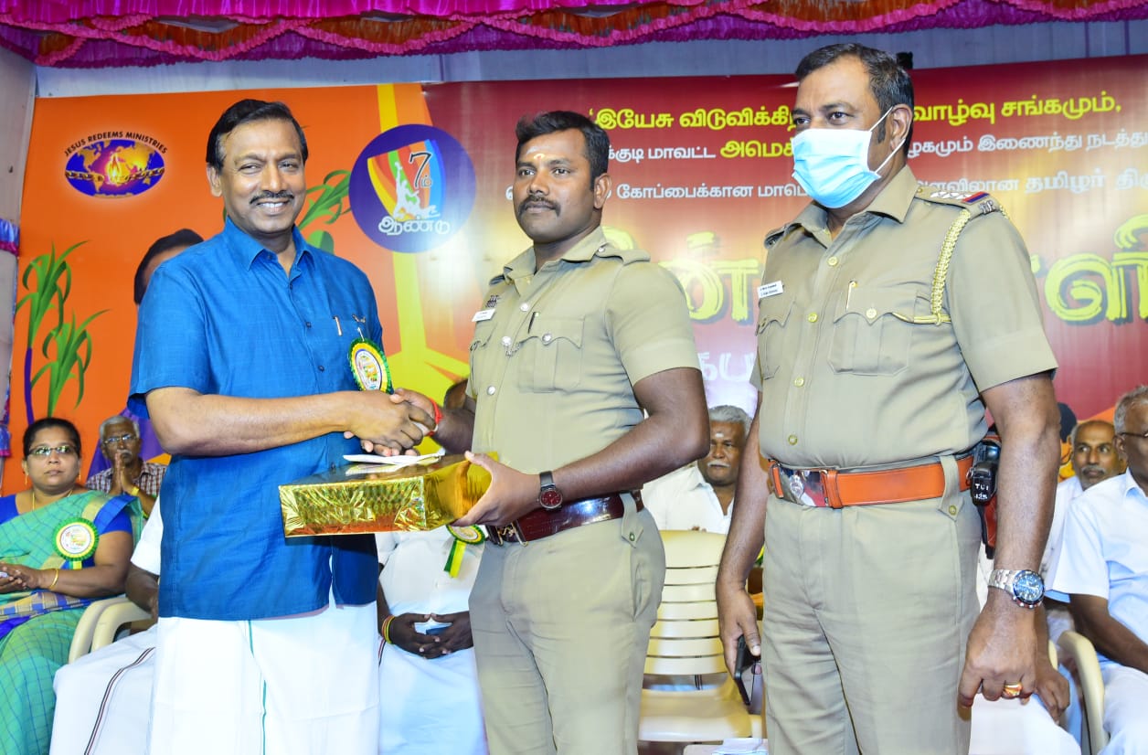 ஆறுமுகநேரி அருகிலுள்ள கீழநவ்வலடியைச் சேர்ந்த சித்திரைவேலுவின் மனைவி அம்மாள் தங்கம் (67). கடந்த 3 நாட்களாக மாரடைப்பால் அவதிப்பட்டு வந்த இவர்,புல் அறுக்க நாக கன்னியாபுரம் பகுதியிலுள்ள வயல்வெளிக்கு சென்றார். அப்போது திடீரென மாரடைப்பு ஏற்பட்டு அங்கே யே பரிதாபமாக இறந்தார். இதுகுறித்து குரும்பூர் போலீ சார் காளிமுத்து என்பவர் மூதாட்டியின் உடலை தனது தோளில் சுமந்த படியே சாலைக்கு கொண்டு வந்து சேர்ந்தார்.இவரது மனித நேயத்தை பாராட்டி இயேசு விடுவிக்கிறார் ஊழியங்களின் சார்பாக மோகன் சி. லாசரஸ் வாழ்த்தி வெகுமதி வழங்கினார்.
