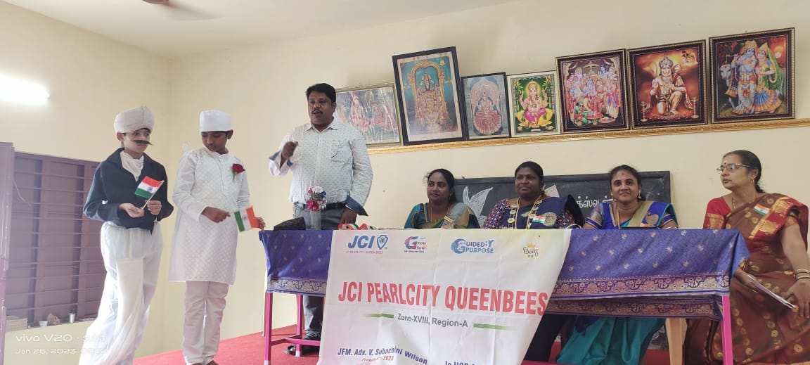 ஜேசிஐ பேர்ல்சிட்டி குயின்பீஸ் தலைவர் JFM வழக்கறிஞர் V. சுபாசினி தேசிய கொடியை ஏற்றினார். கொடியேற்றம் நிகழ்ச்சியைத் தொடர்ந்து மாணவர்களின் கலை நிகழ்ச்சி நடைபெற்றது. தேசபக்தி நடனம், தேசபக்தி பாடல்கள், கட்டுரைப் போட்டி, சொற்பொழிவு மற்றும் வினாடி வினா போட்டிகளில் மாணவ, மாணவியர் பங்கேற்றனர். இந்நிகழ்வுகளை விரிவாக்க நடுநிலைப்பள்ளி தலைமை ஆசிரியை திருமதி ஜி.ரமணி அவர்கள் ஏற்பாடு செய்திருந்தார். ஜேகாம் சார்டர் செயலாளர் JCI Sen எம். முகமது இப்ராகிம் சிறப்பு விருந்தினராக கலந்து கொண்டார். நிகழ்ச்சியில் பியர்ல் சிட்டி குயின் பீஸ் செயலாளர் JC HGF அ. ஆயிஷா இப்ராஹிம் மற்றும் பொருளாளர் Jc M. லட்சுமி முத்துராமன மற்றும் உறுப்பினர்கள் பங்கேற்றனர். போட்டிகளில் பங்குகொண்ட மாணவர்களுக்கு தலைவர் பரிசுகள் வழங்கினார்.
