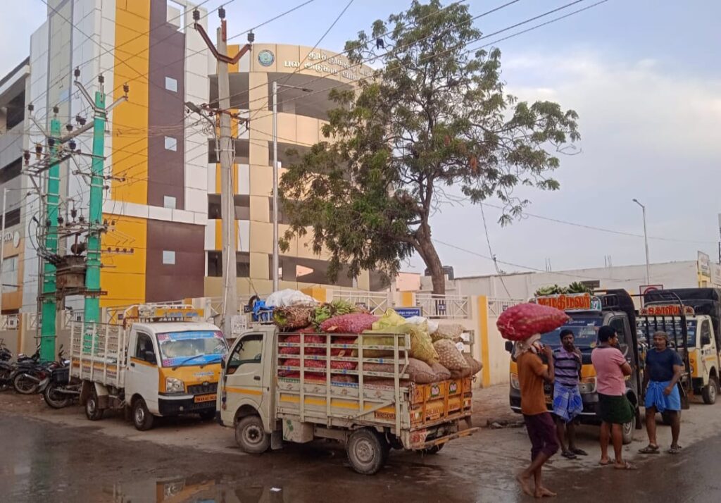 இதே பகுதியில் ஸ்மார்ட் சிட்டி திட்டத்தின் கீழ் வாகன காப்பகம் கட்டி முடிக்கப்பட்டு பணிகள் நிறைவுற்ற நிலையில் இன்னும் திறக்கப்படாமல் இருப்பதால், காய்கனி மார்க்கெட் மற்றும் அதன் அருகிலுள்ள பூ மார்க்கெட் வரும் பொதுமக்கள் வாகனங்களை நிறுத்த முடியாமல் சாலையோரங்களில் நிறுத்தும் சூழல் ஏற்பட்டுள்ளது.