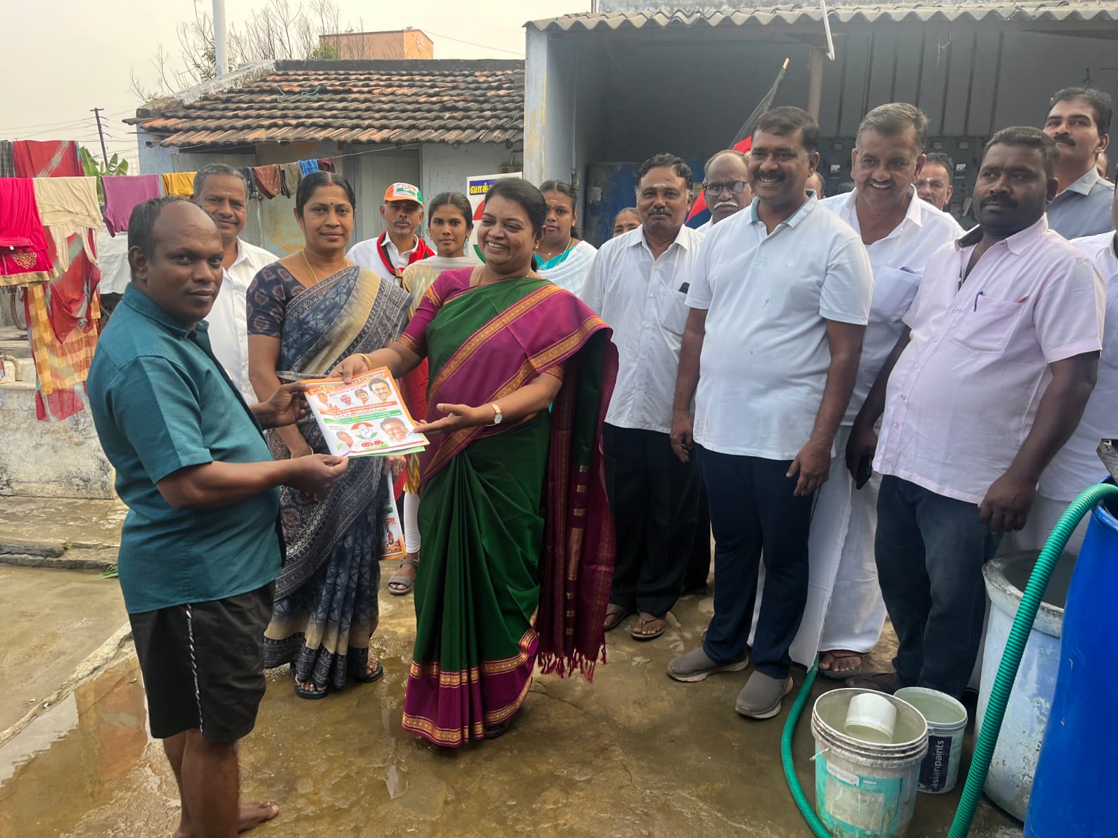 ஓன்றிய செயலாளர் நவநீத கண்ணன், மாவட்ட கவுன்சிலர் மிக்கேல்நவமணி, 51வது வார்டு கவுன்சிலர் விஜயலட்சுமி, மாவட்ட பிரதிநிதி மணி, மற்றும் கருணா, அல்பட், உள்ளிட்ட கூட்டணி கட்சியை சார்ந்தவர்கள் உடன் சென்றனர்.