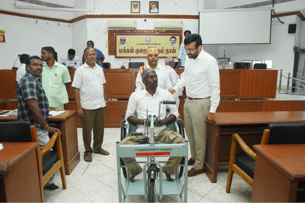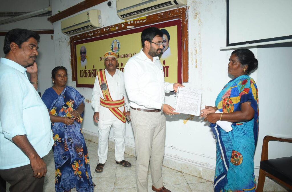 நாகப்பட்டினம் மாவட்ட ஆட்சியர் அலுவலகத்தில மக்கள் குறைதீர்;க்கும் நாள் கூட்டம் மாவட்ட ஆட்சித்தலைவர் டாக்டர் அ.அருண்தம்புராஜ் தலைமையில் இன்று நடைபெற்றது.
