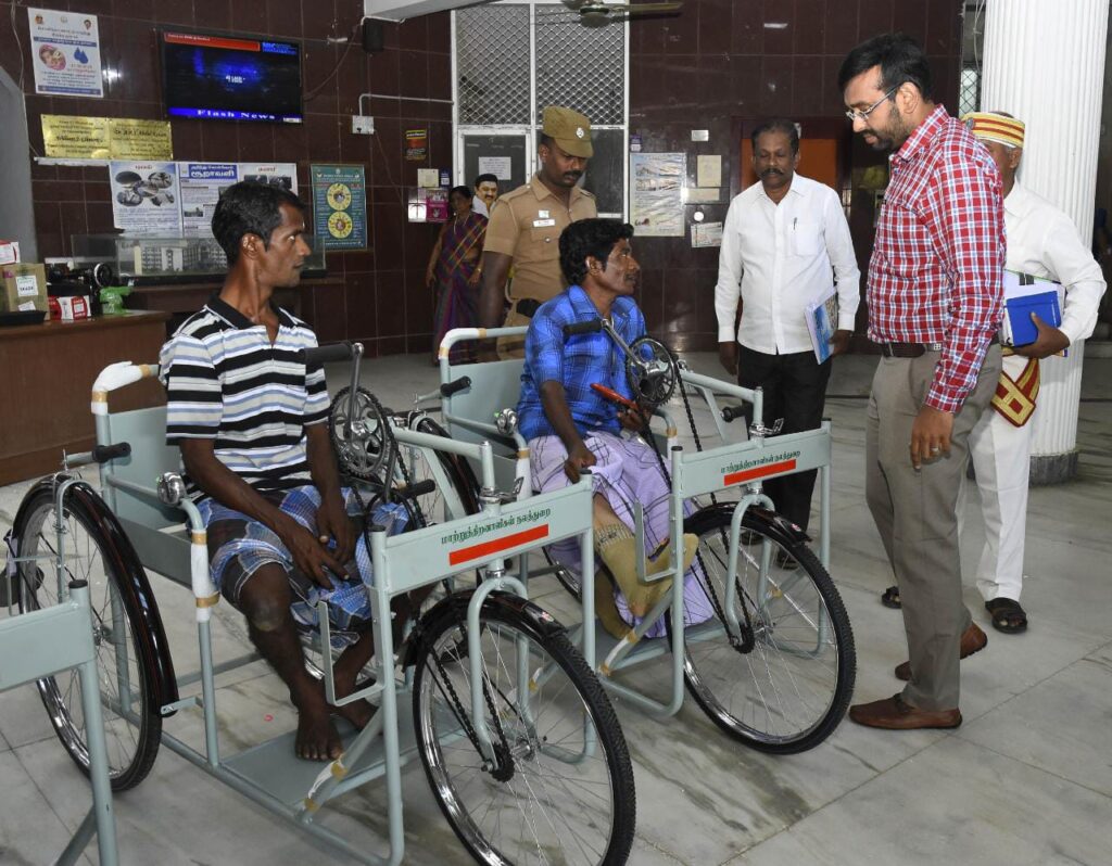 அதனைத்தொடர்ந்து வாராந்திர மக்கள் குறைதீர்க்கும் நாள் கூட்டத்தில் வேதாரண்யம் வட்டம், அண்டர்காடு, மறைஞானநல்லூர் கிராமத்தை சேர்ந்த குணசேகரன் த/பெ முருகையாபிள்ளை என்பவர் சவூதி அரேபியா நாட்டில் இறந்ததற்காக அவரது மனைவி பிரேமலதா என்பவரிடம் தமிழக அரசிடமிருந்து வரப்பெற்ற இழப்பீட்டுத் தொகை ரூ.58,952 க்கான காசோலையினையும், மாற்றுத்திறனாளிகள் நலத்துறை சார்பில் 5 மாற்றுத்திறனாளிக்கு ரூ.9,050 மதிப்பீட்டில் மூன்று சக்கர சைக்கிளையும், 5 மாற்றுத்திறனாளிக்கு ரூ.6,100 மதிப்பீட்டில் தையல் இயந்திரத்தினையும், தமிழ்நாடு நகர்ப்புற வாழ்விட மேம்பாட்டு வாரியம் சார்பில் நாகூர் சம்பா தோட்டம் பகுதியில் கட்டி முடிக்கப்பட்ட அடுக்குமாடி குடியிருப்பு வீட்டிற்கான 10 பயனாளிகளுக்கு ஒதுக்கீட்டு ஆணையினையும் மாவட்ட ஆட்சித்தலைவர் வழங்கினார்.