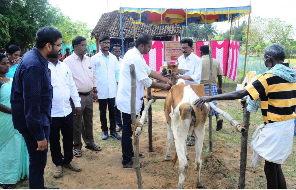 நாகப்பட்டினம் ஊராட்சி ஒன்றியத்திற்குட்பட்ட குறிச்சி கிராமத்தில் கோமாரி நோய் 3வது சுற்று கால் மற்றும் வாய்நோய் தடுப்பூசி முகாமினை