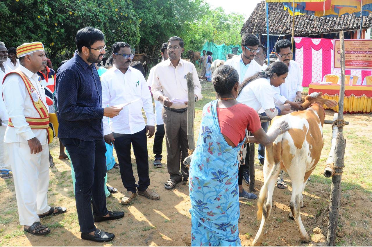 நாகப்பட்டினம் ஊராட்சி ஒன்றியத்திற்குட்பட்ட குறிச்சி கிராமத்தில் கோமாரி நோய் 3வது சுற்று கால் மற்றும் வாய்நோய் தடுப்பூசி முகாமினை மாவட்ட ஆட்சித்தலைவர் டாக்டர் அ.அருண்தம்புராஜ், இன்று தொடங்கி வைத்தார்.
