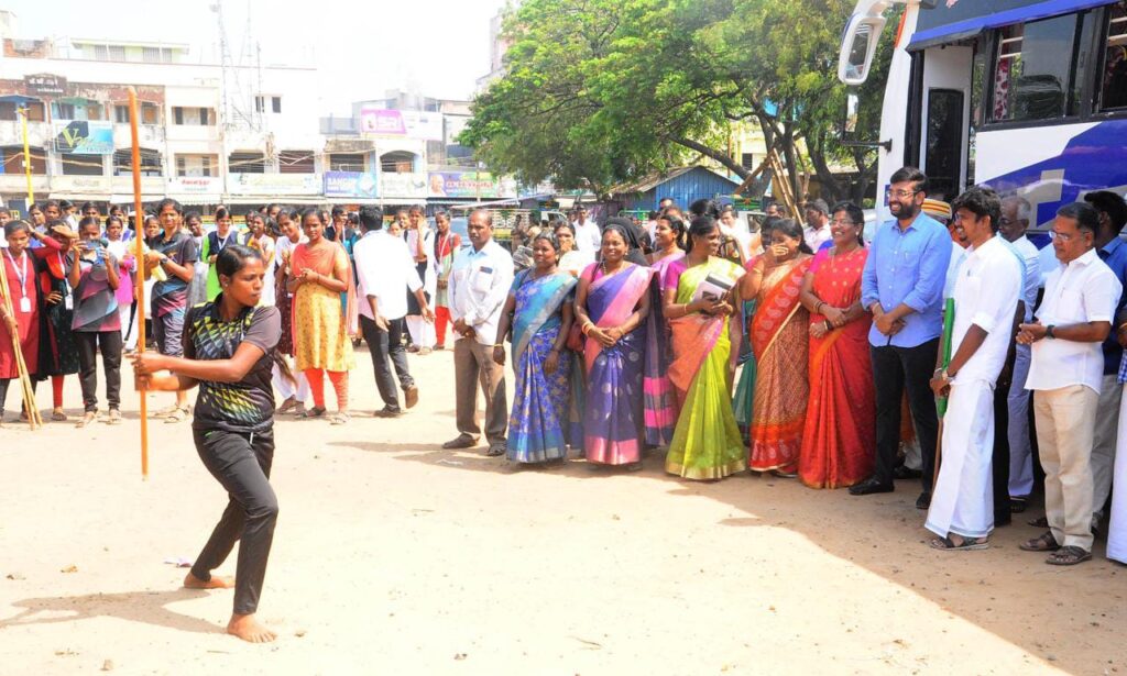 ஆட்சிமொழி சட்ட வாரவிழாவின் ஆறாம் நாளான இன்று நாகப்பட்டினம் புதிய பேருந்து நிலையம் அருகிலுள்ள அவுரித்திடலில் நடைபெற்ற வணிக நிறுவனங்களின் பெயர்ப்பலகைகள் தமிழில் அமைத்திடுவதற்கான விழிப்புணர்வு பேரணி நிகழ்ச்சியில் இடம்பெற்ற கல்லூரி மாணவ, மாணவி;களின் சிலம்பம், பரதநாட்டியம், பண்பாட்டுக் கலை நிகழ்ச்சிகளை மாவட்ட ஆட்சித்தலைவர் பார்வையிட்டார்.