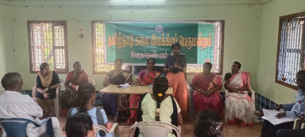 நாகப்பட்டினம் மாவட்டம் வேதாரண்யத்தில் தமிழ்நாடு கலை இலக்கியப் பெருமன்றத்தின் சார்பில் உலக மகளிர் தினத்தையொட்டி வாங்க பேசலாம் இலக்கிய அமர்வு நிகழ்ச்சி மார்ச் 12 ஞாயிற்றுக்கிழமை மாலை நடைபெற்றது.