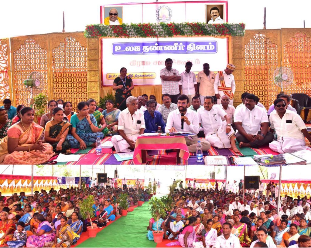 நாகப்பட்டினம் மாவட்டத்திலுள்ள 193 கிராம ஊராட்சிகளிலும் இன்று உலக தண்ணீர் தினத்தையொட்டி கிராமசபா கூட்டம் நடைபெற்று வருகிறது. இக்கிராம சபா கூட்டத்தில் கிராம ஊராட்சியில் தண்ணீர் மற்றும் சுகாதார நெருக்கடியை தீர்க்க மாற்றத்தினை துரிதப்படுத்துதல் ஊராட்சி நிர்வாகம் மற்றும் பொதுநிதி செலவினம் 2022-23ம் ஆண்டில் எடுக்கப்பட்ட பணிகள் கிராம ஊராட்சியின் கடந்த ஆண்டு தணிக்கை அறிக்கை சுத்தமான குடிநீர் விநியோகத்தினை உறுதி செய்தல் அனைத்து கிராம அண்ணா மறுமலர்ச்சி திட்டப்பணிகள் முன்னேற்றம் கிராம வளர்ச்சி திட்டம் தூய்மை பாரத இயக்கம் (ஊரகம்) ஜல்ஜீவன் இயக்கம் கிராம ஊராட்சிகளில் போதைப்பொருள் தடுப்பு மற்றும் ஒழிப்பு¸ குழந்தைகளுக்கான பாலியல் துன்புறுத்தலுக்கு எதிரான நடவடிக்கை சாலை பாதுகாப்பு இரத்த சோகை குறித்த விழிப்புணர்வு குழந்தைகள் மற்றும் முதியோர்கள் உதவி எண்கள் குறித்து பொதுமக்களிடையே விழிப்புணர்வு குறித்த விவாதங்கள் நடைபெறும்.