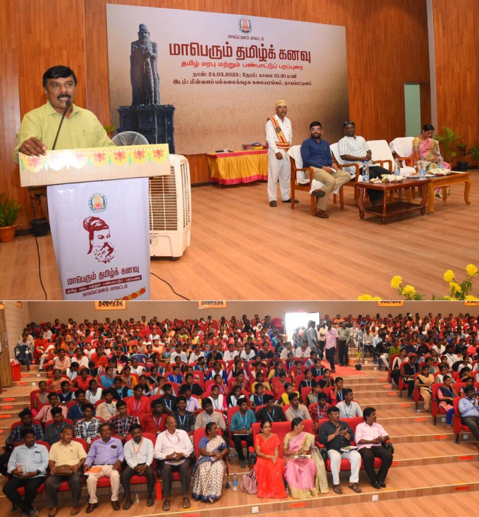 மாண்புமிகு தமிழ்நாடு முதலமைச்சர் அவர்களின் உத்தரவின்படி, தமிழ்நாடு முழுவதும் நமது மரபின் வளமையையும், சமூக சமத்துவத்தையும், பொருளாதார மேம்பாட்டிற்கான வாய்ப்புகளையும் இளம் தலைமுறையினருக்கு கொண்டு செல்ல வேண்டும், என்ற நோக்கத்தில் இந்த மாபெரும் தமிழ் கனவு என்ற தலைப்பில் தமிழ் மரபு மற்றும் பண்பாட்டு பரப்புரை நிகழ்ச்சி நடைபெற்று வருகிறது.அதன் அடிப்படையில் இன்று மீன்வளப் பல்கலைக் கழக கலையரங்கத்தில் மாபெரும் தமிழ் கனவு, தமிழ் மரபு மற்றும் பண்பாட்டு பரப்புரை நிகழ்ச்சி பல்வேறு கல்லூரிகளைச் சேர்ந்த ஆயிரத்திற்கும் மேற்பட்ட மாணவ-மாணவிகள் முன்னிலையில் நடைபெற்றது. இந்நிகழ்ச்சியில் ஊடகவியலாளர்கள் சரித்திர காலமும் சம காலமும் என்ற தலைப்பில் சமஸ் வாட்ஸ் அப்பில் வருவது வரலாறா வதந்தியா என்ற தலைப்பில் செந்தில் வேல் அவர்களும் சொற்பொழிவாற்றினார்கள்.