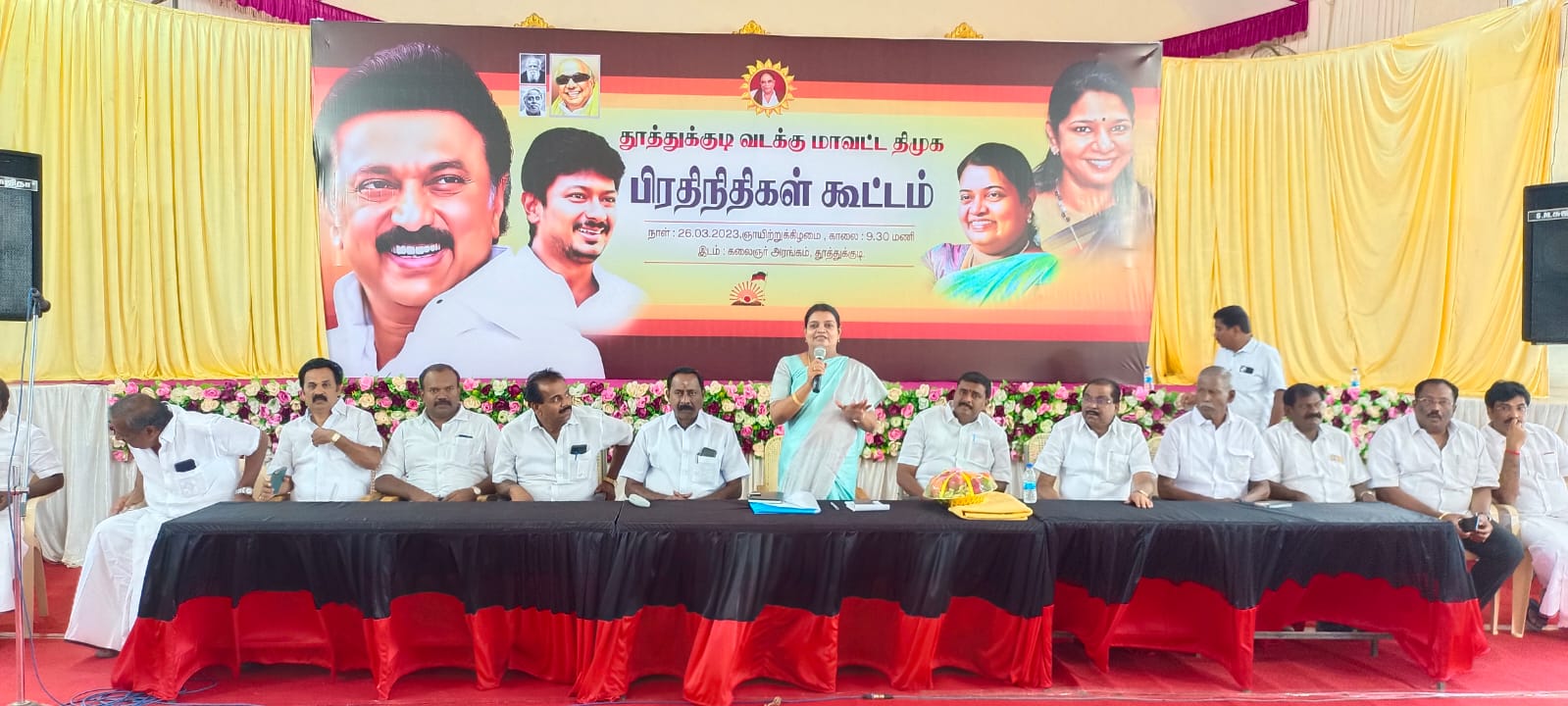 தூத்துக்குடி வடக்கு மாவட்ட திமுக பிரதிநிதிகள் கூட்டம் கலைஞர் அரங்கில் நடைபெற்ற கூட்டத்திற்கு மாவட்ட அவைத்தலைவர் செல்வராஜ் தலைமை வகித்தார். மார்க்கன்டேயன் எம்.எல்.ஏ மேயர் ஜெகன் பெரியசாமி மாநகர செயலாளர் ஆனந்தசேகரன், ஆகியோர் முன்னிலை வகித்தனர்.