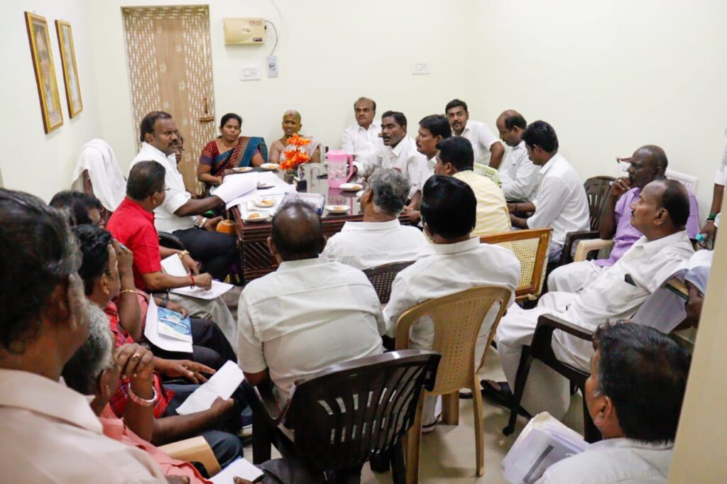 இந்நிலையில் மில்லர்புரத்தில் உள்ள மாநகராட்சி மேற்கு மண்டல அலுவலகத்தில் மேயர் ஜெகன் பெரியசாமி தலைமையில் மாநகராட்சி மண்டல அன்னலட்சுமி முன்னிலையில் ஆலோசனை கூட்டம் நடைபெற்றது. தெற்கு மண்டல பகுதிக்குட்பட்ட அனைத்து பகுதிகளிலும் நடைபெற வேண்டிய மற்றும் நடைபெற்றுக் கொண்டிருக்கிற பணிகள் குறித்தும் பொதுமக்கள் நலன் கருதிய எதிர்கால திட்டங்கள் குறித்தும் ஆலோனை மேற்கொள்ளப்பட்டது.