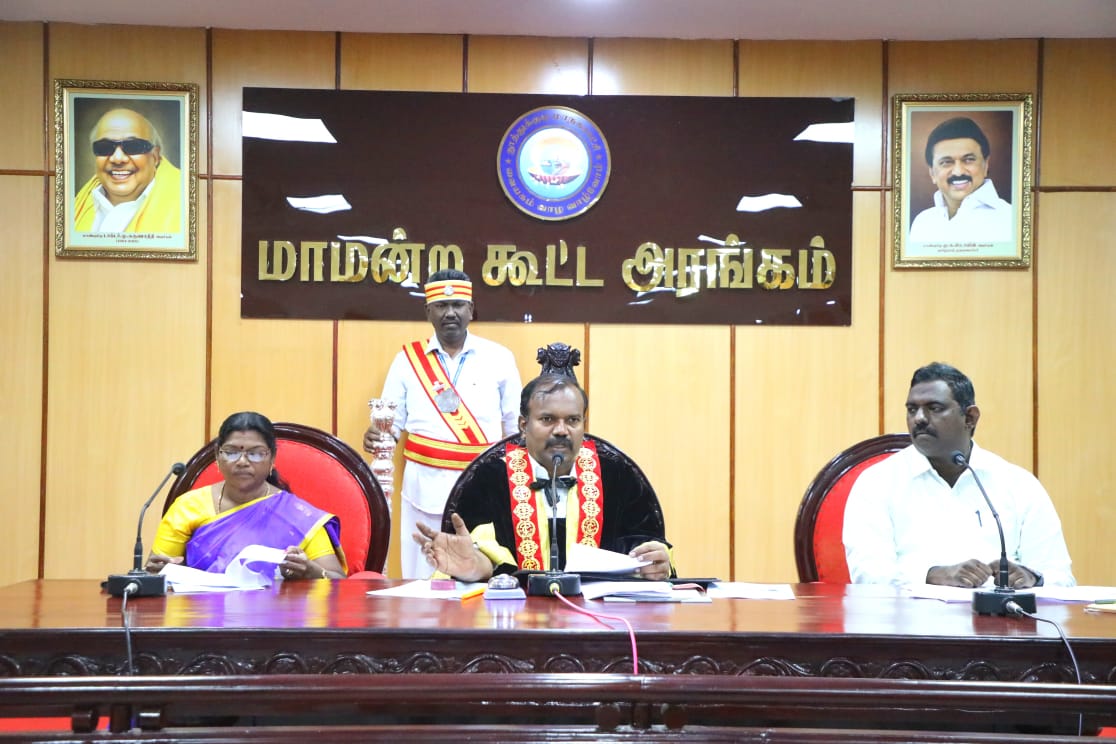 தூத்துக்குடி மாநகராட்சி சாதாரண கூட்டம், பட்ஜெட் தாக்கல் செய்வதற்கான சிறப்பு கூட்டம் மேயர் ஜெகன் பெரியசாமி தலைமையில் துணை மேயர் ஜெனிட்டா, ஆணையர் தினேஷ்குமார் ஆகியோர் முன்னிலையில் கூட்டரங்கில் நடைபெற்றது.