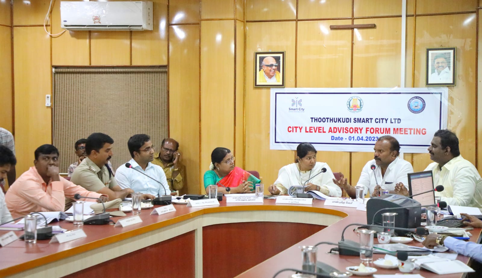 அமைச்சர் கீதாஜீவன், கலெக்டர் செந்தில்ராஜ், மேயர் ஜெகன் பெரியசாமி மாவட்ட காவல் கண்காணிப்பாளர் பாலாஜி சரவணன், ஆணையர் தினேஷ்குமார் உள்ளிட்டோர் அதிகாரிகளுடன் மாநகரில் ஸ்மார்ட் சிட்டி திட்டத்தின் கீழ் நடைபெறும் பேருந்து நிலையம் வணிக வளாகம் பணிகளை நல்ல முறையில் விரைவாக முடிக்க வேண்டும். முடிவு பெறாத சாலை கால்வாய் உள்ளிட்ட பல பணிகளையும் முடிக்க வேண்டும். மாநகரில் பெருகி வரும் வாகன பெருக்கம் ஜனத்தொகை நெருக்கடி உள்ளிட்ட பலவற்றை விவாதித்தபோது நெருக்கடியான சூழ்நிலைகளில் லாரிகள் பகல் நேரங்களில் அனுமதிக்க படுவதால் ஏற்படும் நெருக்கடி குறித்தும் சில சாலைகளை மாற்று வழி மூலம் போக்குவரத்து நெரிசலுக்கு தீர்வு கான்பது நடைபெற்றுக் கொண்டிருக்கின்ற பணிகளை முறையாக விரைவாகவும் முடிப்பது என்று விவாதிக்கப்பட்டது.