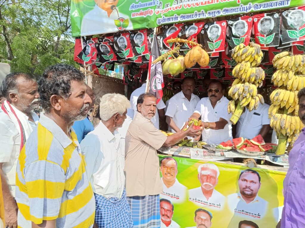 அதிமுக பொதுச் செயலாளரும் முன்னாள் முதல்வரும் சட்டமன்ற எதிர் கட்சி தலைவர் எடப்பாடி பழனிச்சாமி ஆணைக்கிணங்க முத்தையாபுரம் மெயின் ரோட்டில் அமைக்கப்பட்ட கோடைகால நீர், மோர் பந்தலை நிர்வாகிகள் கோட்டாளமுத்து, ஜெகதீசன், கோபி, சீனிவாசன், மனோகர், சிவசாமி, பேச்சாளர் அனல் ராஜசேகர், மூக்குத்துரை, ராமர், ஆகியோர் ஏற்பாட்டில் அமைப்பு செயலாளர் முன்னாள் அமைச்சர் சி.த. செல்லப்பாண்டியன் திறந்து பொதுமக்களுக்கு குளிர்பானங்கள், இளநீர், மோர், தர்பூசணி மற்றும் பழவகைகளை வழங்கினார்.