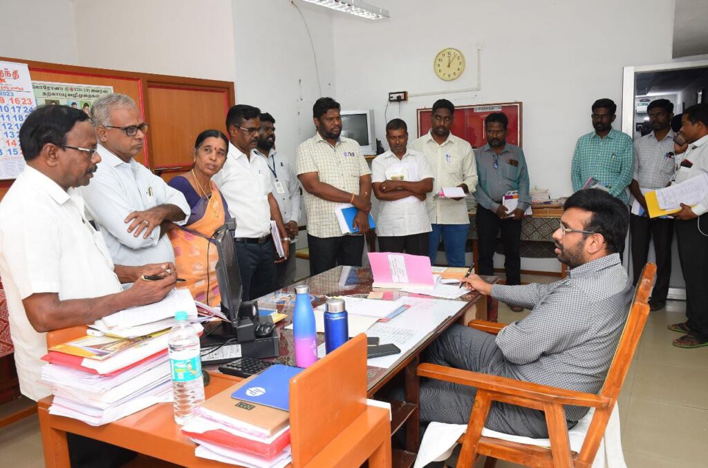 அதனைத் தொடர்ந்து வேதாரண்யம் ஊராட்சி ஒன்றிய அலுவலகத்தில் பராமரிக்கப்படும் பணிப்பதிவேடுகளை மாவட்ட ஆட்சித்தலைவர் நேரில் பார்வையிட்டு ஆய்வு செய்தார்.