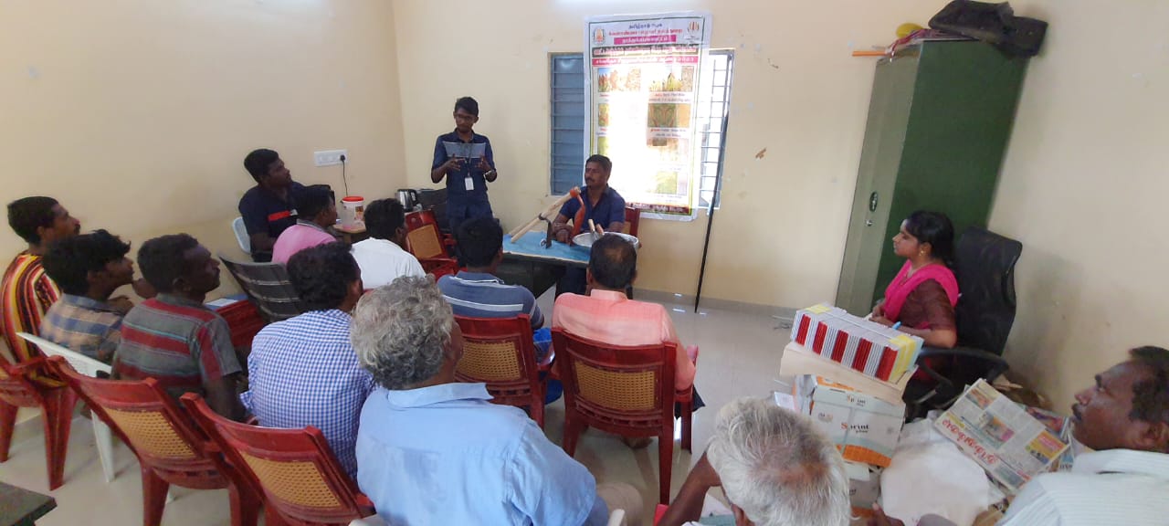 வேளாண்மை அலுவலர் ரோஹித்ராஜ் பேசுகையில் இந்த திட்;டத்தில் அரசு பணி செய்பவர்களும் பென்சன் வாங்குபவர்களும் இதில் பங்கு கொள்ள முடியாது ஒருகுடும்பத்தில் ஓரு நபருக்கு மட்டும் வேளாண்மை சார்ந்த திட்டங்கள் பயனடைய முடியும் அதை ஊக்கப்படுத்தும் வகையில் அதற்கு தேவையான மண்வெட்டி கடப்பாறை பண்ணை அறிவாள் மின்கலத்தெளிப்பான் உள்ளிட்ட 6 வகையான பொருட்கள் மாணிய விலையில் வழங்கப்படும். ஆரோக்கியமான வாழ்விற்கு ஊட்டச்சத்தான சோளம் கம்பு கேழ்வரகு திணை குதிரைவாழி சாமை உள்ளிட்டவைகளை பயன்படுத்தி கொள்ள வேண்டும் என்று கேட்டுக்கொண்டார்.