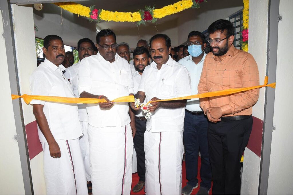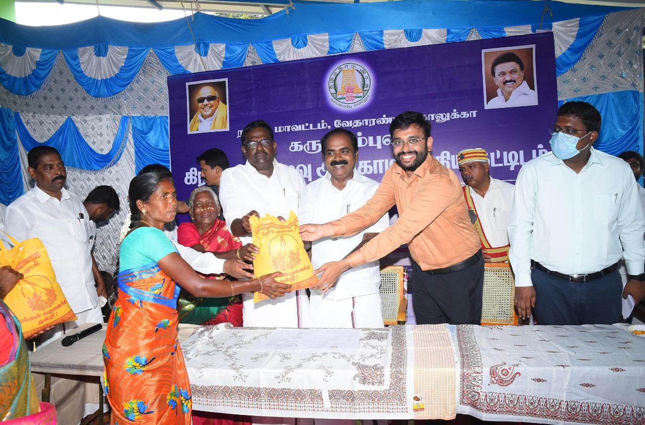 வேதாரண்யம் ஊராட்சி ஒன்றியத்திற்குட்பட்ட பஞ்சநதிக்குளம் நடுசேத்தி ஊராட்சி, கருப்பம்புலம் ஊராட்சி தெற்குகாடு கிராமம் மற்றும் நடுக்காடு கிராமம் ஆகிய பகுதிகளில் தலா ரூ.14.59 இலட்சம் வீதம் என மொத்தம் ரூ.43.77 இலட்சம் மதிப்பீட்டில் மகாத்மா காந்தி தேசிய ஊரக வேலை உறுதி திட்டத்தின் கீழ் புதிதாக கட்டப்பட்டுள்ள நியாய விலைக்கடை கட்டடங்களை மாண்புமிகு சுற்றுச்சூழல் காலநிலை மாற்றத்துறை மற்றும் முன்னாள் படை வீரர் நலத்துறை அமைச்சர் திறந்து வைத்தார்.