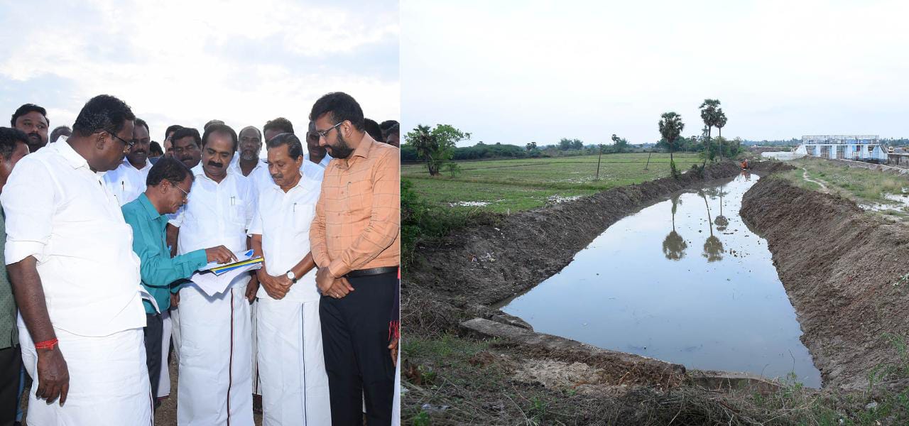 நாகப்பட்டினம் மாவட்டம் தலைஞாயிறு ஊராட்சி ஒன்றியம் ஆலங்குடியில் பொதுப்பணித்துறை மற்றும் நீர்வள ஆதாரத்துறை மூலம் நடைபெற்று வரும் தூர்வாரும் திட்ட பணிகளை சுற்றுச்சூழல் காலநிலை மாற்றத்துறை மற்றும் முன்னாள் படை வீரர் நலத்துறை அமைச்சர் சிவ.வீ.மெய்யநாதன் நேரில் பார்வையிட்டு ஆய்வு மேற்கொண்டார்.