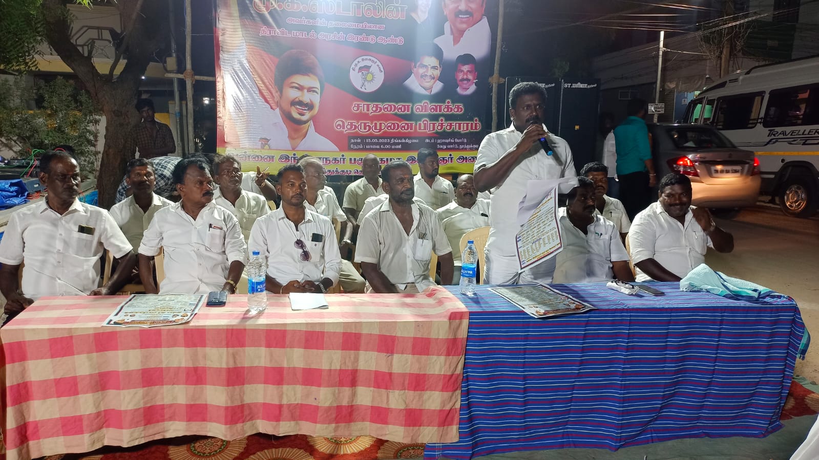 திமுக ஆட்சி பொறுப்பேற்று இரண்டாண்டு சாதனை விளக்க பொதுக்கூட்டம் தமிழகம் முழுவதும் நடைபெறவேண்டும். என்று முதலமைச்சர் மு.க.ஸ்டாலின் அறிவிப்புக்கிணங்க முதல்கட்டமாக நடைபெற்று முடிந்தது. இரண்டாவது கட்டமாக மாநில திமுக இளைஞர் அணி செயலாளரும் விளையாட்டுதுறை அமைச்சருமான உதயநிதிஸ்டாலின் இளைஞர் அணி சார்பில் திராவிடமாடல் அரசின் இரண்டு ஆண்டு சாதனை விளக்க தெருமுனை பிரச்சாரம் மேற்கொள்ள வேண்டும். என்று உத்தரவிட்டதையடுத்து தெற்கு மாவட்ட திமுக செயலாளரும் மீன்வளம் மற்றும் கால்நடைத்துறை அமைச்சருமான அனிதா ராதாகிருஷ்ணன், வழிகாட்டுதலின் படி