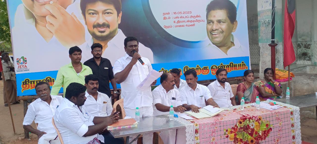 திமுக ஆட்சி பொறுப்பேற்று இரண்டாண்டு சாதனை விளக்க பொதுக்கூட்டம் தமிழகம் முழுவதும் நடைபெற வேண்டும். என்று முதலமைச்சர் மு.க.ஸ்டாலின் அறிவிப்புக்கிணங்க முதல்கட்டமாக நடைபெற்று முடிந்தது. இரண்டாவது கட்டமாக மாநில திமுக இளைஞர் அணி செயலாளரும் விளையாட்டுதுறை அமைச்சருமான உதயநிதிஸ்டாலின் இளைஞர் அணி சார்பில் திராவிடமாடல் அரசின் இரண்டு ஆண்டு சாதனை விளக்க தெருமுனை பிரச்சாரம் மேற்கொள்ள வேண்டும். என்று உத்தரவிட்டதையடுத்து தெற்கு மாவட்ட திமுக செயலாளரும் மீன்வளம் மற்றும் கால்நடைத்துறை அமைச்சருமான அனிதா ராதாகிருஷ்ணன், வழிகாட்டுதலின் படி திருச்செந்தூர் சட்டமன்ற தொகுதிக்குட்பட்ட உடன்குடி உதிரமாடன் குடியிருப்பு பகுதியில் நடைபெற்ற கூட்டத்திற்கு ஒன்றிய குழு தலைவரும் மேற்கு ஒன்றிய செயலாளருமான பாலசிங் தலைமை வகித்தார்.