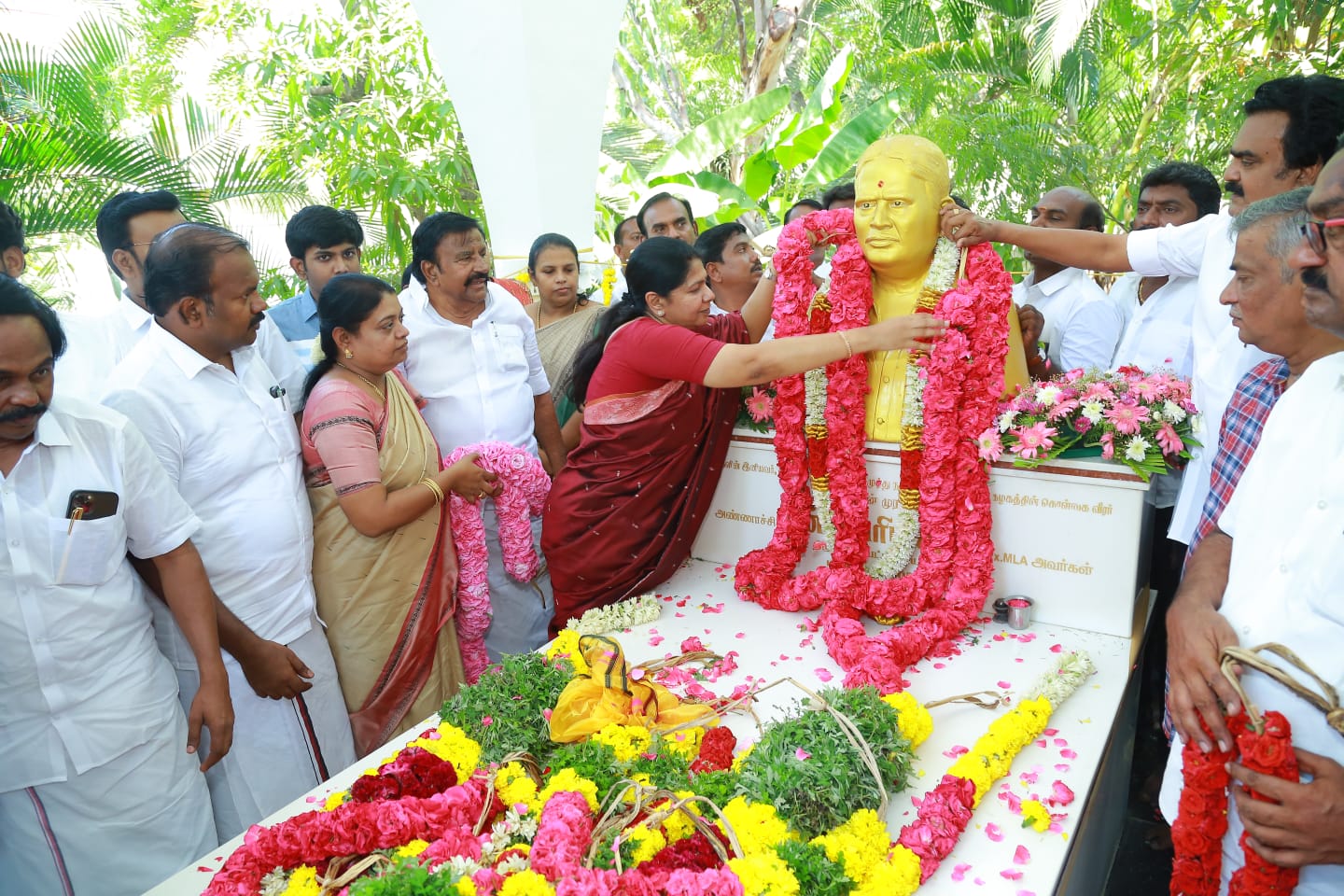 தூத்துக்குடி மாவட்ட திமுக முன்னாள் செயலாளரும் எம்.எல்.ஏவுமான பெரியசாமியின் 6ம் ஆண்டு நினைவு தினத்தை முன்னிட்டு போல்பேட்டையில் அமைந்துள்ள மணி மண்டபத்திலுள்ள அவரது சிலைக்கு நினைவிடத்தில் பெரியசாமியின் மனைவி எபனேசர், வடக்கு மாவட்ட திமுக செயலாளரும் சமூகநலன் மற்றும் பெண்கள் உரிமைத்துறை அமைச்சருமான கீதாஜீவன், தெற்கு மாவட்ட திமுக செயலாளரும் மீன்வளம் மற்றும் கால்நடைதுறை அமைச்சருமான அனிதா ராதாகிருஷ்ணன், நகராட்சி நிர்வாகத்துறை அமைச்சர் கேஎன் நேரு, பால்வளத்துறை அமைச்சர் மனோதங்கராஜ், எம்.எல்.ஏக்கள் மார்க்கன்டேயன் சண்முகையா, மேயர் ஜெகன் பெரியசாமி, அசோக்பெரியசாமி, அவரது மருமகன்கள் ஜீவன்ஜேக்கப், சுதன்கீலர், மகள்கள், மருமகள்கள், பேரன்கள், பேத்திகள், ஆகியோர் மலர் அஞ்சலி செலுத்தினார்கள்.