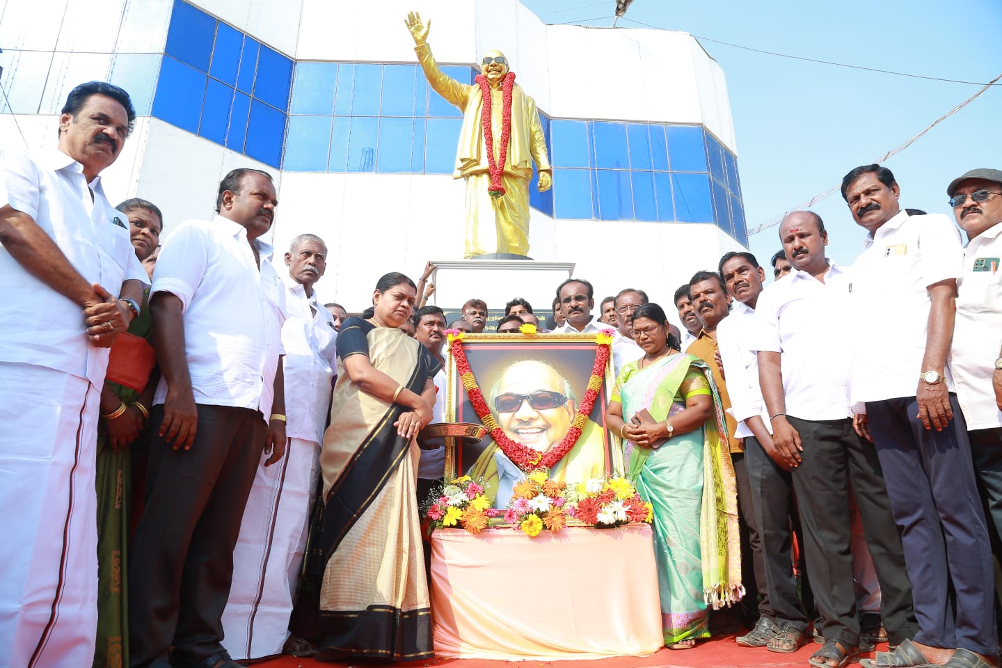 திமுக தலைவரும், முன்னாள் முதலமைச்சருமான மு.கருணாநிதி 100வது பிறந்தநாளையொட்டி வடக்கு மாவட்ட திமுக சார்பில் எட்டையாபுரம் சாலையில் உள்ள வடக்கு மாவட்ட திமுக அலுவலகம் முன்பு அலங்கரிக்கப்பட்ட கருணாநிதி சிலைக்கு மாவட்ட செயலாளரும் சமூகநலன் மற்றும் பெண்கள் உரிமைத்துறை அமைச்சருமான கீதாஜீவன், மேயர் ஜெகன் பெரியசாமி ஆகியோர் மாலை அணிவித்து மலர் தூவி மரியாதை செய்து கொடியேற்றினார்கள்.