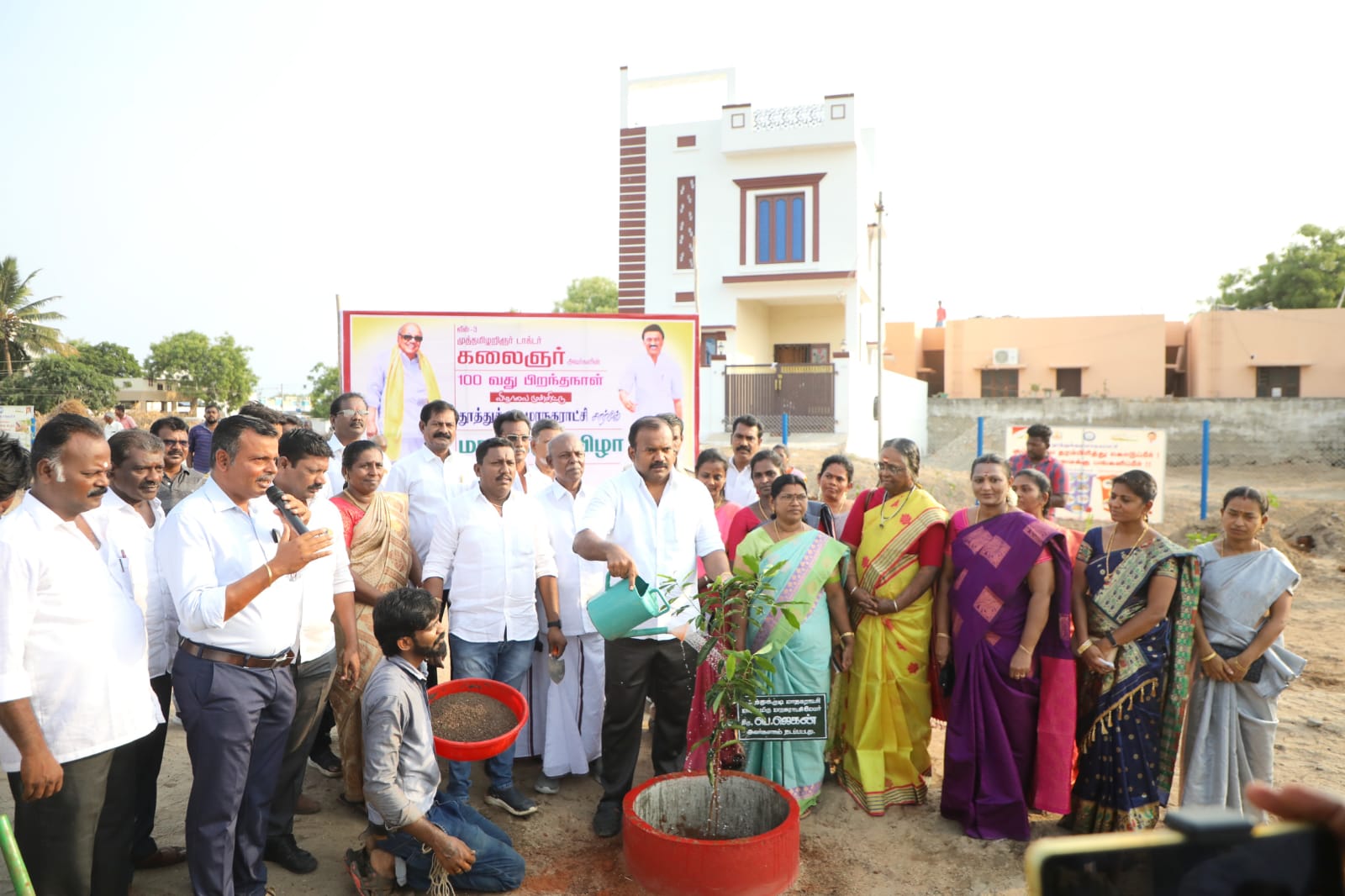 இந்நிலையில் ராம்நகரில் ஆக்கிரமிப்பாளர்களிடமிருந்து மீட்கப்பட்ட மாநகராட்சிக்கு சொந்தமான இடத்தில் மாநகராட்சி சார்பில் முன்னாள் முதலமைச்சர் கருணாநிதியின் 100வது பிறந்தநாளையொட்டி பல்வேறு வகையான 300 மரக்கன்றுகள் நடும் திட்டத்தை மேயர் ஜெகன் பெரியசாமி தொடங்கி வைத்தார்.