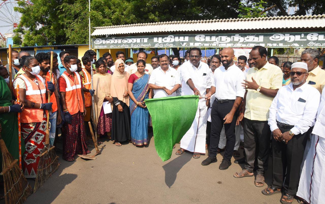 நாகப்பட்டினம் புதிய பேருந்து நிலையத்தில் உலக சுற்றுச்சூழல் தினத்தை முன்னிட்டு நகராட்சி சார்பில் பெரும் அளவில் மக்கள் பங்களிப்புடன் இடங்களை சுத்தம் செய்தல் என்ற தலைப்பில் நடைபெற்ற தூய்மை பணியினை மாவட்ட ஆட்சித்தலைவர் ஜானி டாம் வர்கீஸ் மற்றும் தமிழ்நாடு மீன்வளர்ச்சிக் கழக தலைவர் என்.கெளதமன் இன்று கொடியசைத்து தொடங்கி வைத்தனர்.