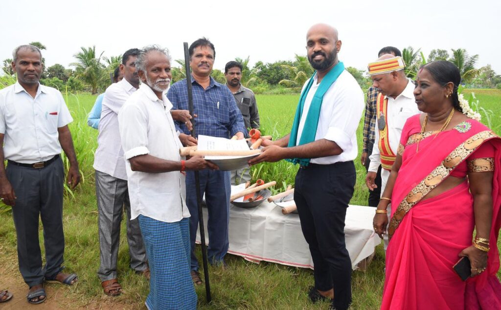 நாகப்பட்டினம் மாவட்டம் கீழையூர் ஒன்றியம் கிராமத்துமேடு ஊராட்சியில் விவசாயிகளை சிறுதானிய சாகுபடி செய்ய ஊக்கப்படுத்தும் வகையில் ஸ்ரீ லெட்சுமி ஒருங்கிணைந்த இயற்கை பண்ணையில் பாரம்பரிய கேழ்வரகு அறுவடையினை மாவட்ட ஆட்சித்தலைவர் ஜானி டாம் வர்கீஸ் தொடங்கி வைத்தார்.