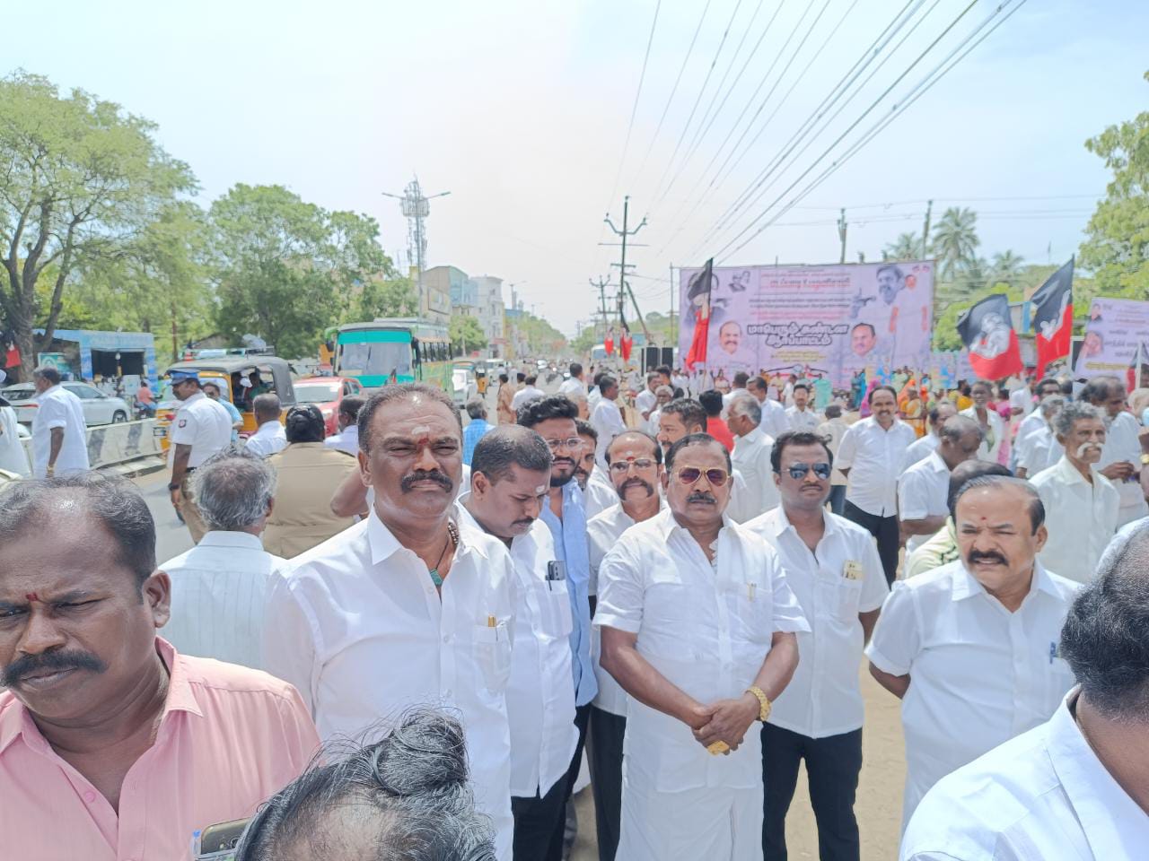 ஆர்ப்பாட்டத்தில், மாநில எம்ஜிஆர் மன்ற இணைச் செயலாளர் ஆறுமுக நயினார், அமைப்பு செயலாளர் சின்னதுரை, முன்னாள் மாவட்ட மத்திய கூட்டுறவு வங்கித் தலைவர் சுதாகர், முன்னாள் மாவட்ட செயலாளர் ஹென்றி, மாவட்ட அவைத்தலைவர் திருப்பாற்கடல், ஒன்றியச் செயலாளர் காசிராஜன், யூனியன் சேர்மன் வசந்தாமணி, மாவட்ட துணைச் செயலாளர்கள் சந்தனம், செரினா, மாநகராட்சி எதிர்கட்சித் தலைவர் வீரபாகு, மாவட்ட எம்ஜிஆர் இளைஞரணி துணை செயலாளர் வலசை வெயிலுமுத்து, மாநகராட்சி கொறடா வக்கீல் மந்திர மூர்த்தி, முன்னாள் மேயர் அந்தோணி கிரேஸி, பகுதி செயலாளர்கள் பொன்ராஜ், ஜெய்கணேஷ், முருகன், சேவியர், சார்பு அணி செயலாளர்கள் வக்கீல் சேகர், நடராஜன், விக்னேஷ், தனராஜ், பிரபாகர், அருண்ஜெபக்குமார், அண்ணா தொழிற்சங்க போக்குவரத்து மண்டல செயலாளர் கல்விக்குமார், நகர செயலாளர்கள் மகேந்திரன், பேரூராட்சி செயலாளர்கள் காசிராஜன், ரவிச்சந்திரன், வேதமாணிக்கம், துரைச்சாமி ராஜா, அசோக்குமார், மாவட்ட எம்.ஜி.ஆர் மன்ற இணைச் செயலாளர்கள் சத்யாலெட்சுமணன், முருகன், முன்னாள் அரசு வழக்கறிஞர்கள் கோமதிமணிகண்டன், ஆண்ட்ருமணி, பிள்ளைவிநாயகம், வக்கீல்கள் முனியசாமி, செங்குட்டுவன், சரவணபெருமாள், மனுவேல்ராஜ், பிராங்கிளின் ஜோஸ், ஆறுமுகம், லெட்சுமணன், பெருமாள், மாநகராட்சி கவுன்சிலர்கள் வெற்றிச்செல்வன், ஜெயலட்சுமி, பத்மாவதி, நிர்வாகிகள் டைகர் சிவா, மைதீன், சுரேஷ், தலைமை பேச்சாளர் முருகானந்தம், நிர்வாகிகள் மாரியப்பன், விஜயன், செல்லப்பா, மகாராஜன், பிரபாகரன், பாண்டி, வட்ட செயலாளர்கள் திருச்சிற்றம்பலம், சந்திரசேகர், டேவிட் ஏசுவடியான், ராமச்சந்திரன், சுயம்பு, முருகன், பாக்கியராஜ், கொம்பையா, வெங்கடேஷ், அருண்ஜெயக்குமார், அருண்ராஜா, மணிகண்டன், நௌசாத், ஜெயக்குமார், அந்தோணிராஜ், பூர்ணசந்திரன், செல்வராஜ், கண்ணையா, மகளிர்கள் ராஜேஸ்வரி, ஸ்மைலா, பானுமதி, பாலஜெயம், சாம்ராஜ், சகாயராஜ்;, தலைமை பேச்சாளர் கருணாநிதி, வடக்கு மாவட்ட ஜெ பேரவை இணைச் செயலாளர் ஜீவாபாண்டியன், மாவட்ட வழக்கறிஞர் பிரிவு ராஜாராம், முன்னாள் மாவட்ட மீனவரணி இணை செயலாளர் துரைப்பாண்டியன், மாவட்ட மகளிர் அணி இணைச்செயலாளர் ஞானபுஷ்பம், முன்னாள் மாவட்ட எம்ஜிஆர் இளைஞரணி துணை செயலாளர் ஞான்ராஜ், மாவட்ட தலைவி சாந்தா, பிரதிநிதி ஜான்சிராணி, முன்னாள் கவுன்சிலர்கள் ஜெயக்குமார், சகாயராஜ், தமிழரசி, மேலூர் கூட்டுறவு வங்கி தலைவர் சிவசுப்பிரமணியன், இயக்குனர் அன்புலிங்கம், வட்ட செயலாளர்கள் சகாயராஜ், ராஜா, அருண்குமார், துரைசிங், அந்தோணி பர்ணான்டோ, சிறுபான்மை பிரிவு அசன், மாவட்ட தகவல் தொழில்நுட்ப பிரிவு இணைச் செயலாளர் கௌதம் பாண்டியன், முன்னாள் வட்ட செயலாளர்கள