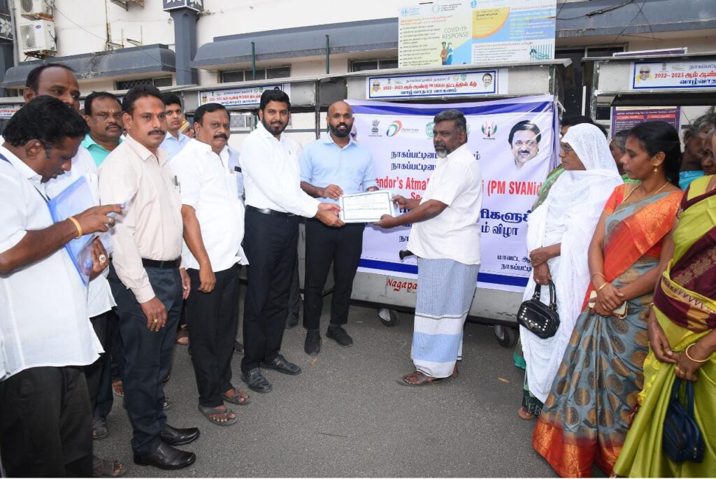 சிறு வியாபாரிகள், வணிகர்களுக்கு மூலதனத்துக்காக கடன் உதவி வழங்குவதற்காக பிரதமர் தெரு வியாபாரிகள் ஆத்மநிர்பார் நிதி திட்டம் எனப்படும் பிரதமர் ஸ்வநிதி திட்டம் அறிமுகப்படுத்தப்பட்டது. அதனடிப்படையில் இன்று பிரதமர் ஸ்வநிதி திட்டத்தின் கீழ் தலா ஒரு வண்டியின் விலை ரூ 1,06,000 மதிப்பீட்டில், 9 உணவு மற்றும் பழ விற்பனை வண்டிகளை ரூ. 9,54,000 மதிப்பீட்டில் மற்றும் ஒரு பூ விற்பனை வண்டி ரூ. 60,000 மதிப்பீட்டில் என ஆகமொத்தம் ரூ. 10,14,000 மதிப்பீட்டில் விற்பனை வண்டிகளை மாவட்ட ஆட்சித்தலைவர் வழங்கினார்.