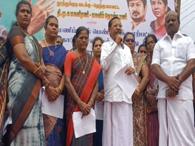 தூத்துக்குடி விவிடி சிக்னல் அருகே நடைபெற்ற ஆர்ப்பாட்டத்தில், திமுக அமைப்புச் செயலாளர் ஆர்.எஸ் பாரதி, ஆர்ப்பாட்டத்தை தொடங்கி வைத்து பேசினார். அப்போது பேசிய அவர், இது கிறிஸ்துவர்களுக்கு எதிரான மதக் கலவரம் என்றும், கலவரத்திற்கு காரணமான