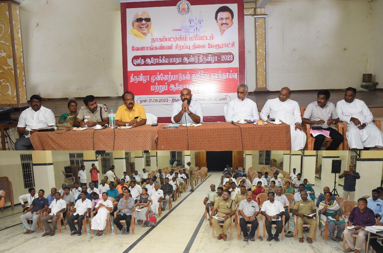 நாகப்பட்டினம் மாவட்டம் வேளாங்கண்ணி அன்னை ஆரோக்கிய மாதா திருமண மண்டபத்தில் வேளாங்கண்ணி புனித ஆரோக்கிய மாதா ஆண்டு பெருவிழா 2023 நடைபெறவுள்ளதை முன்னிட்டு முன்னேற்பாடு பணிகள் குறித்த ஆய்வுக்கூட்டம் மாவட்ட ஆட்சித்தலைவர் ஜானி டாம் வர்கீஸ் தலைமையில் நடைபெற்றது.