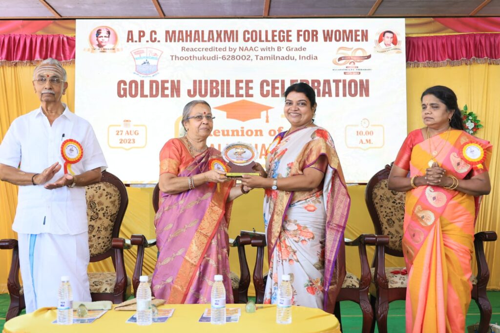 இந்த கல்லூரியில் பயின்ற வடக்கு மாவாட்ட திமுக செயலாளரும் சமூகநலன் மற்றும் மகளிர் உரிமைத்துறை அமைச்சர் கீதாஜீவன் சிறப்பு அழைப்பாளராகப் பங்கேற்று, கல்லூரியில் பயின்ற மறக்க முடியாத நினைவுகளை பகிர்ந்து கொண்டு பேசுகையில் ஏ.பி.சி. மகாலட்சுமி மகளிர் கல்லுரியின் 50வது பொன்விழா கொண்டாடப்பட்டு வருகிறது. இந்த நாளை கல்லூரி நிர்வாகம் ஏற்பாடு செய்திருந்தார்கள். இதில் 1973ல் படித்த மாணவிகள் முதல் கடந்த முறை பயின்ற மாணவிகள் வரை வந்துள்ளீர்கள். ஏபிசி வீரபாகு மிகச் சிரமங்களுக்கு இடையில் இந்த கல்லூரியை தொடங்கி தற்போது வளர்ச்சி பெற்ற கல்லூரியாக அரசு அதிகாரிகள், மற்றும் உயர் பதவிகள் ஆன்றோர்கள், சான்றோர்களை உருவாக்கியுள்ளது. தூத்துக்குடி மண்ணைச் சார்ந்த மகாகவி பாரதியாரின் கனவை நனவாக்கும் எண்ணமாக இந்த கல்லூரி தொடங்கப்பட்டது. தற்போது அந்த கனவு மெய்ப்பிக்கப்பட்டு இருக்கிறது.நான் 12ம் வகுப்பு வரை தமிழ்வழி கல்வி தான் படித்தேன். இங்கு வந்து சேர்ந்த பின்பு எப்படி படிக்க போகிறோம் என்று ஒருவாரமாக பல்வேறு சிந்தனைகள் இருந்தது உண்டு. பல ஆசிரியர்கள் எங்களை கண்டிப்புடன் வழி நடத்தினார்கள். ஆடை அலங்காரம் தேவைதான் ஆனால் அதற்கு அடிமையாகிவிடக் கூடாது. இந்த பெண்கள் கல்லூரியில் படிக்கும் காலத்தில் தொழில் செய்ய வேண்டும். அல்லது தொழிலதிபராக இருக்க வேண்டும். என்ற எண்ணத்தில் இருந்த எனக்கு இன்று அரசியலில் பணியாற்றி வருகிறேன். இந்த மகளிர் கல்லூரியில் படித்ததால் தான் நான் இன்று சமூகநலன் மற்றும் மகளிர் உரிமைத்துறை அமைச்சராக இருக்கிறேன். இன்றும் சிறந்த கல்லூரிகளின் வரிசையில் இக்கல்லூரியும் உள்ளது. இக்கல்லூரியின் கல்விப் பணி மேலும் சிறக்க வாழ்த்துகிறேன் என்றார்.