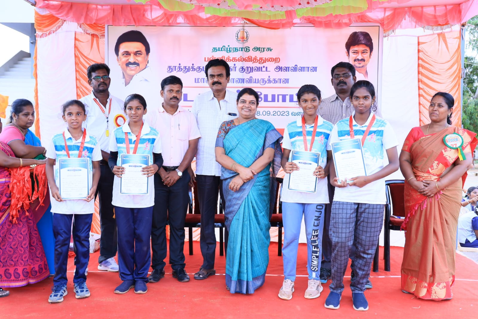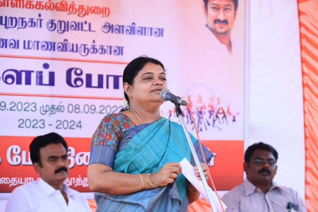 தமிழ்நாடு அரசு பள்ளி கல்வித்துறை சார்பில் தூத்துக்குடியில் உள்ள கீதாமெட்ரிக் மேல்நிலைப்பள்ளி ஓருங்கிணைத்த தூத்துக்குடி புறநகர் குறுவட்ட அளவிலான மாணவ மாணவியர்களுக்கான தடகள போட்டி தருவை விளையாட்டு மைதானத்தில் நடைபெற்றது. அதில் வெற்றி பெற்றவர்களுக்கு வடக்கு மாவட்ட திமுக செயலாளரும் சமூகநலன் மற்றும் பெண்கள் உரிமைத்துறை அமைச்சருமான கீதாஜீவன் பரிசு மற்றும் சான்றிதழ்களை வழங்கி பேசுகையில் தமிழகம் முதலமைச்சர் தளபதியார் எல்லாத்துறைகளும் முன்னேற்றம் அடைந்து இந்தியாவிற்கு தமிழ்நாடு முதன்மை மாநிலமாக இருக்க வேண்டும் என்று தொலைநோக்கு பார்வையோடு திட்டங்கள் வகுக்கப்பட்டு முறையாக செயல்படுத்தப்பட்டு வருகின்றன. அதே போல் கல்வியறிவு இல்லாத தமிழகத்தை உருவாக்கும் வகையில் கல்வித்துறைக்கு அதிக நிதி ஓதுக்கிடு செய்யப்பட்டு கல்வியின் தரத்தை உயர்த்தி மாணவ மாணவிகளின் அறிவுத்திறனை வளர்க்கும் வகையில் பள்ளி கல்வித்துறை செயல்படுகிறது. அதே போல் உடல் ஆரோக்கியத்திற்கு விளையாட்டும் அவசியம் என்பதை உணர்ந்து விளையாட்டுத்துறையை மேம்படுத்தி உலகளவில் தமிழக வீரர்களை உருவாக்கும் வகையில் என்னற்ற விளையாட்டு போட்டிகள் நடத்தப்பட்டு அதில் பங்கு பெறுபவர்களையும் அரசு ஊக்குவித்து வருகிறது. இதில் கலந்து கொண்டுள்ள மாணவ மாணவிகளுக்கு கல்வியும் அவசியம் விளையாட்டும் முக்கியம் என்பதை உணர்ந்து அதில் சாதனைகள் புரிந்து தமிழகத்திற்கும் தமிழக அரசிற்கும் பெருமையை சேர்க்கும் வகையில் நீங்கள் முன்உதாரணமாக இருக்க வேண்டும் என்று பேசினார்.